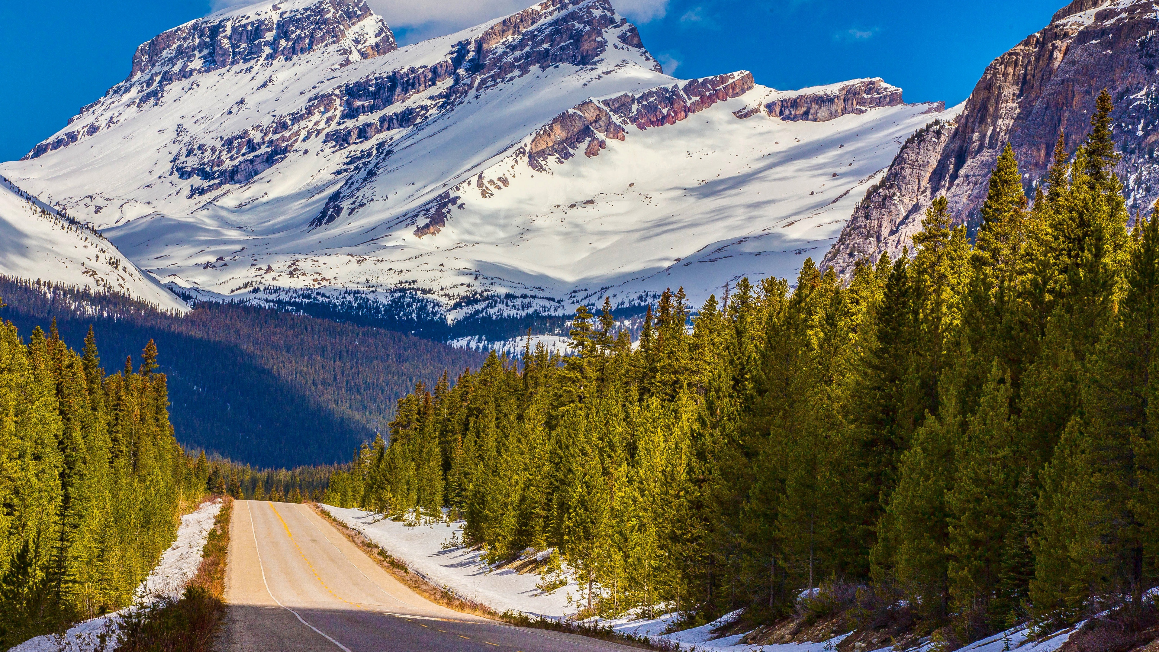 Alberta canada banff national park mountain road distance snow 4k wallpaper