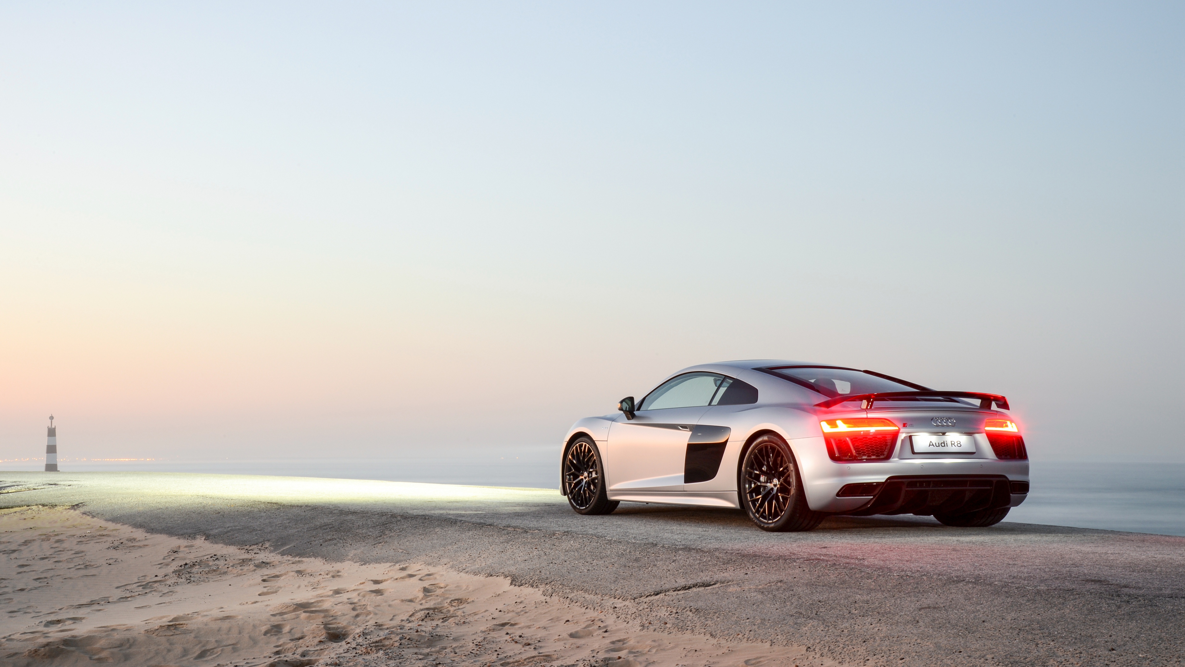 Audi r8 rear view road 4k wallpaper