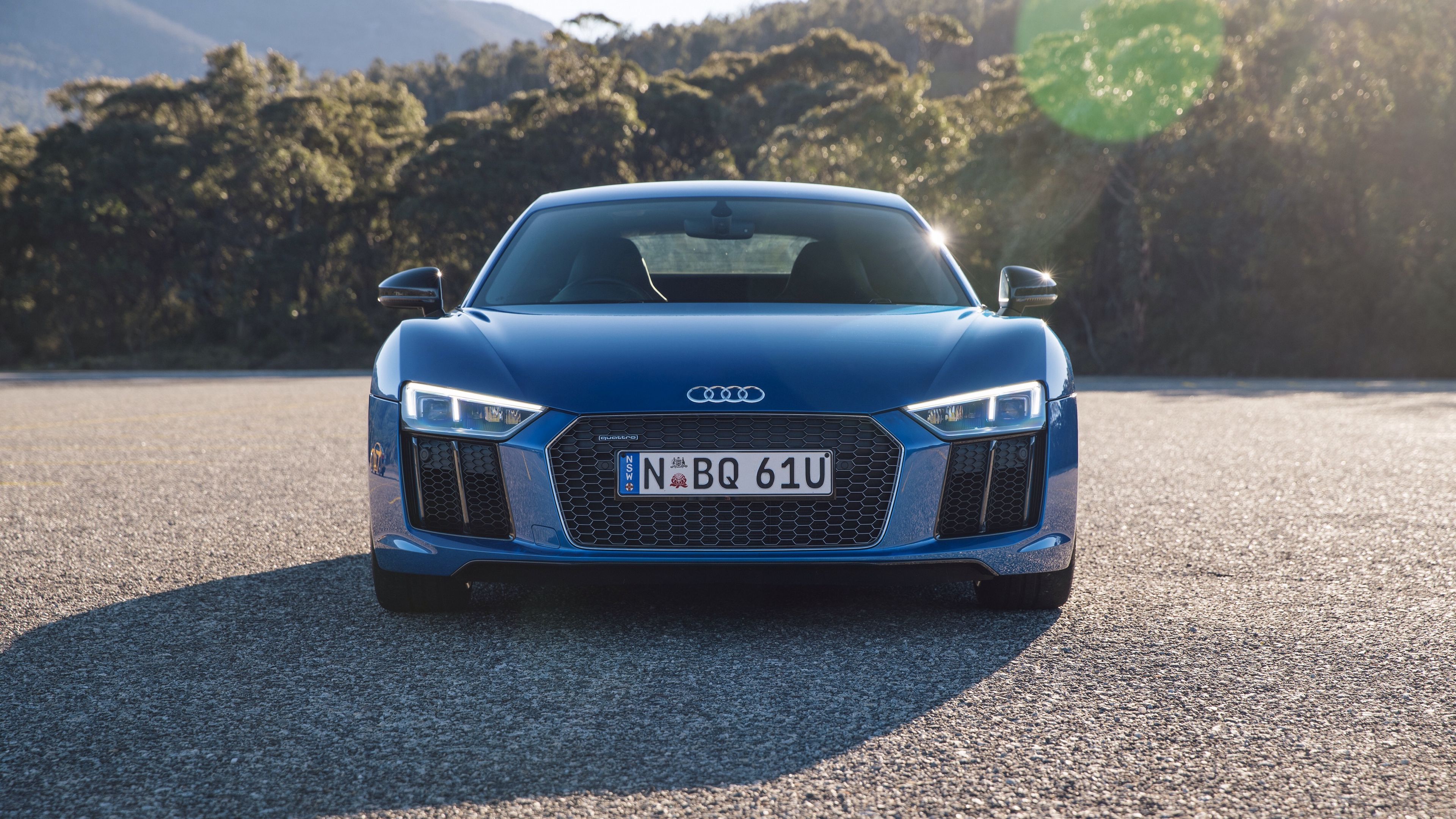 Audi r8 v10 blue front view 4k wallpaper