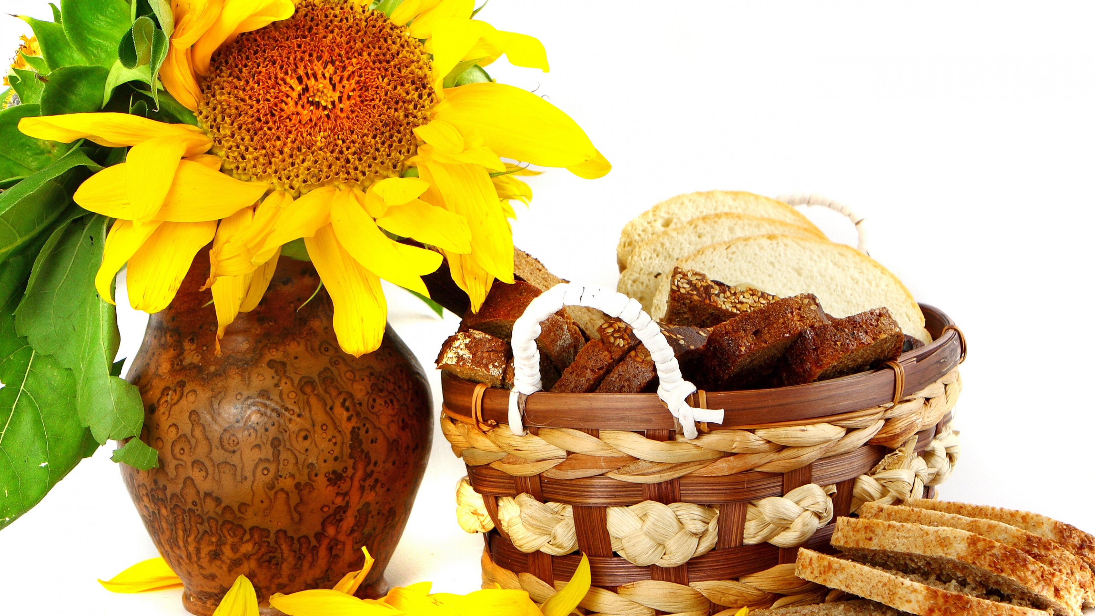 Basket bread song jar sunflowers 4k wallpaper Description :