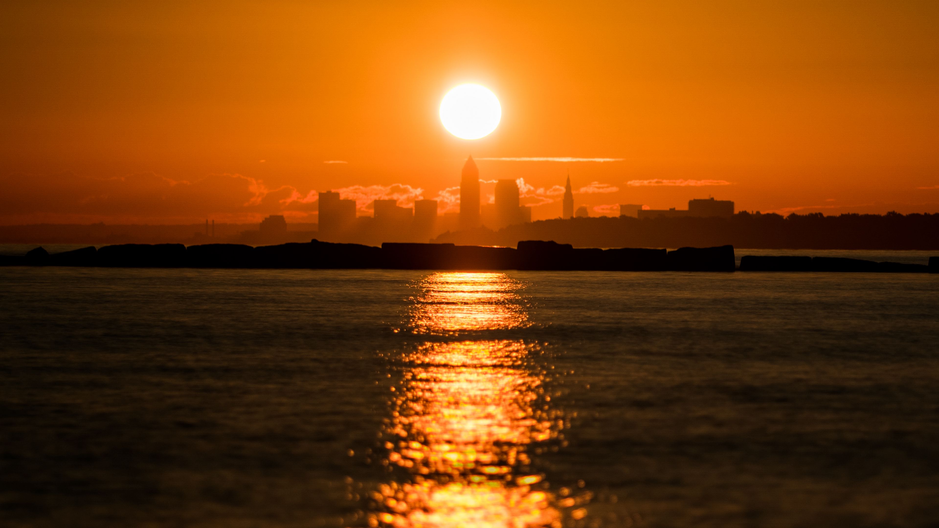 Bay sunset skyline 4k wallpaper
