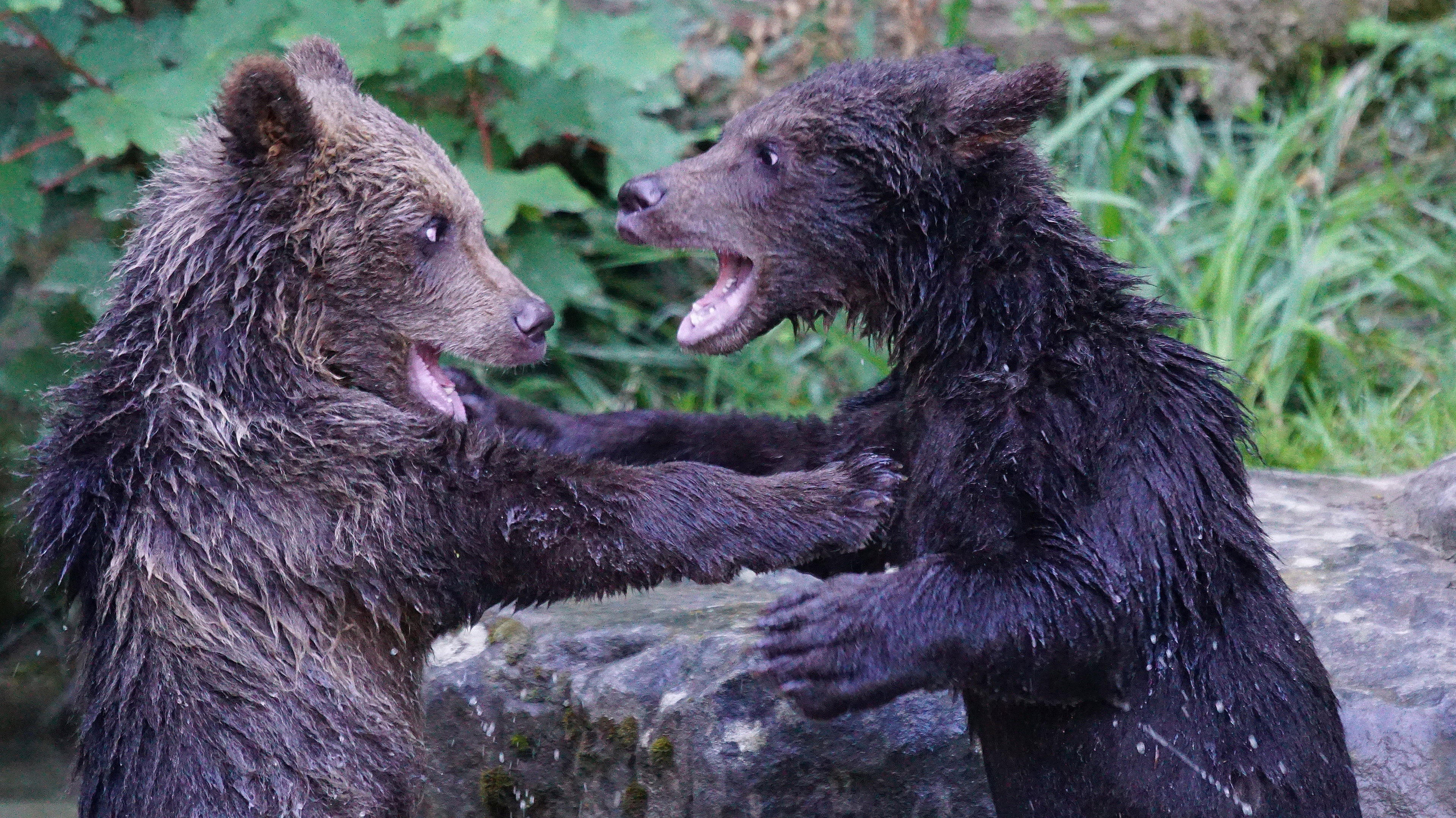 Bears cub couple water playful 4k wallpaper Description :