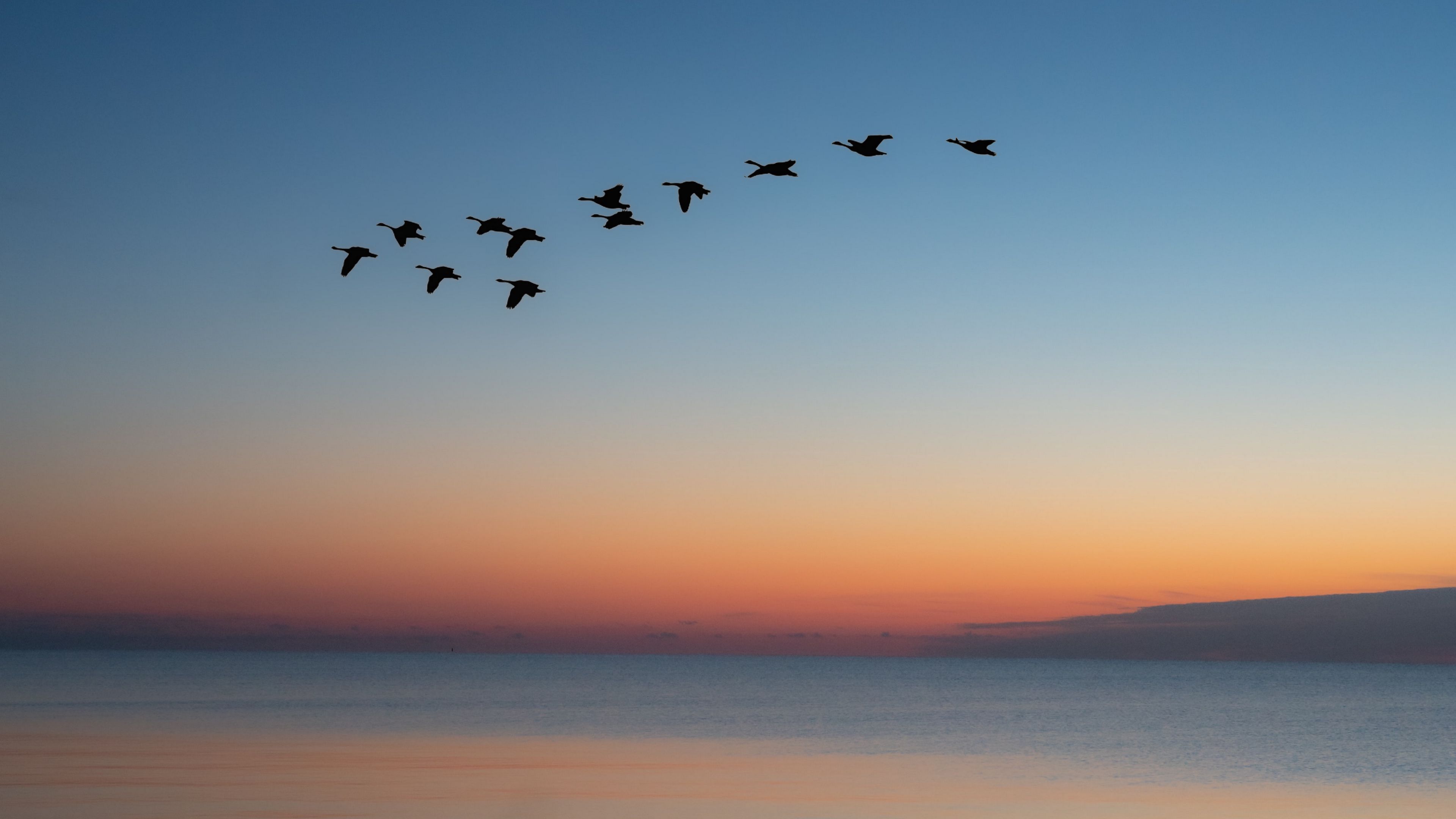 Birds flock sunset image 4k wallpaper