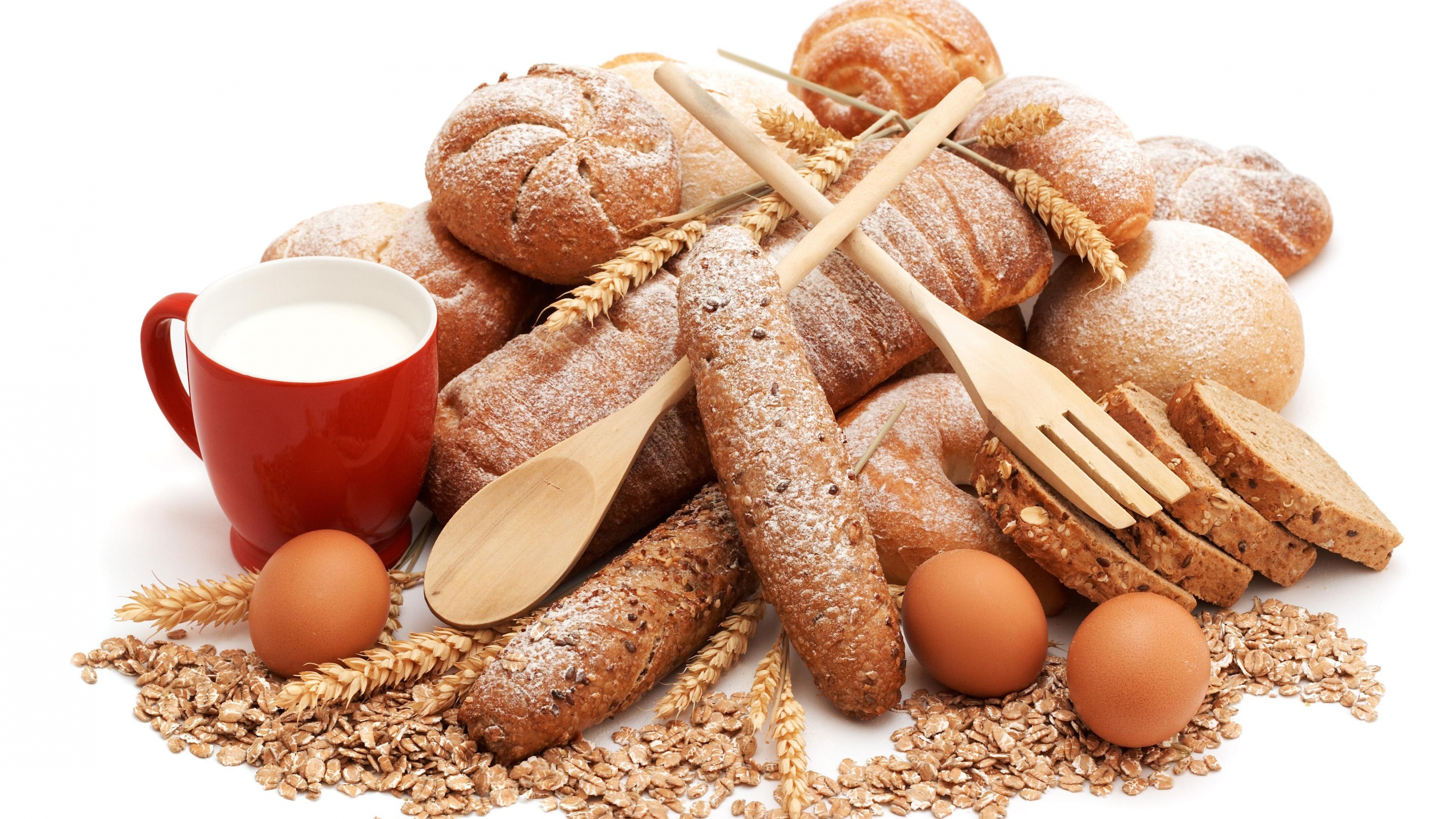 Bread batch rolls flakes milk glass ears 4k wallpaper Description :