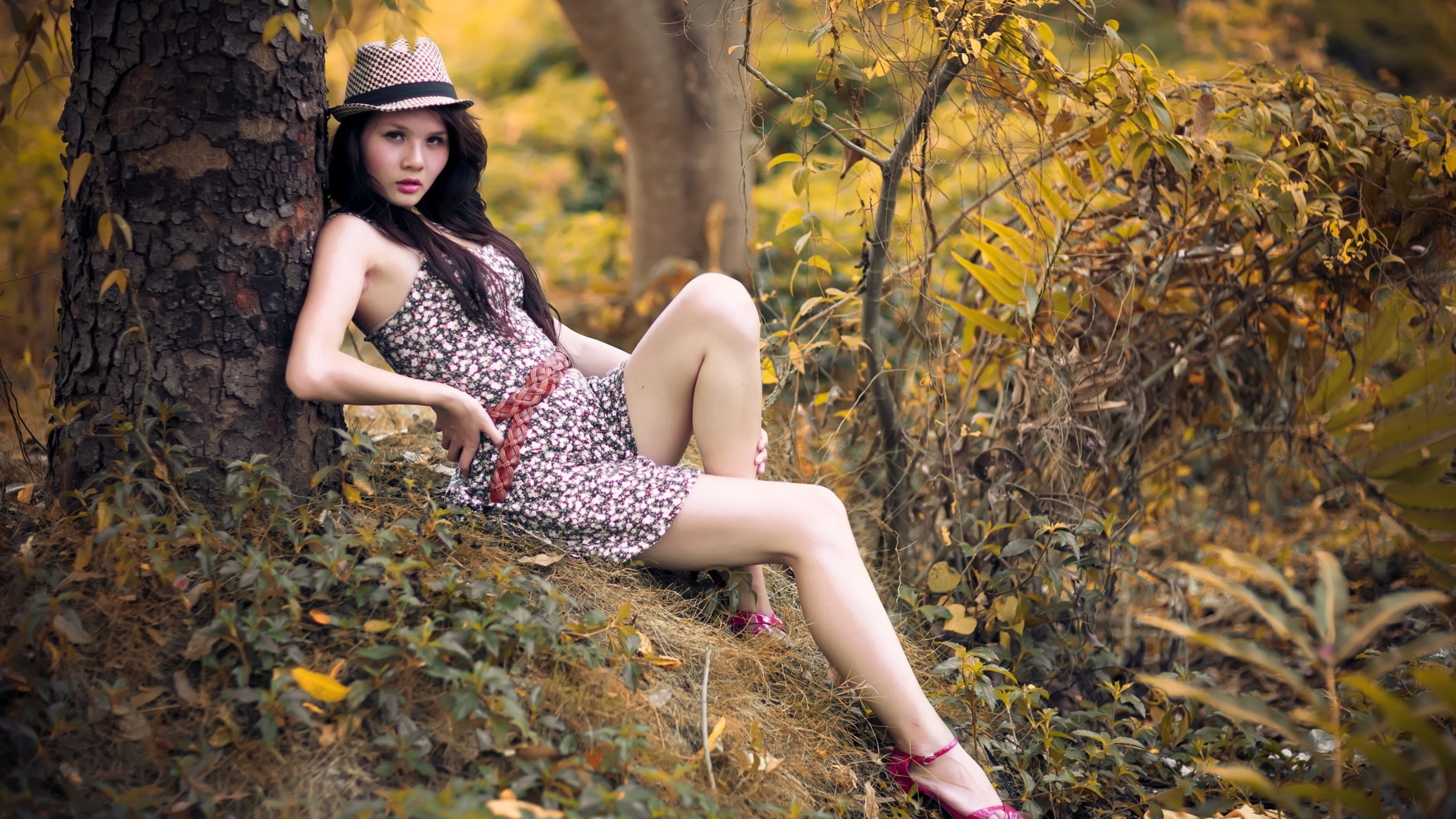 Brunette in the woods 8k wallpaper Description :