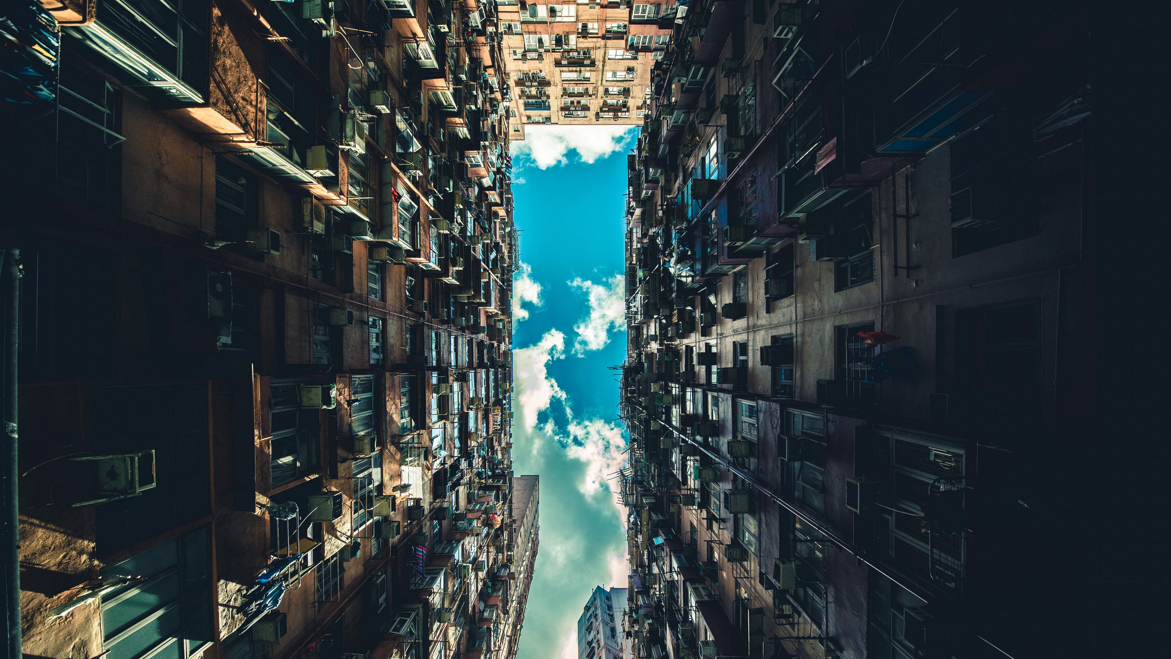 Building architecture bottom view 4k wallpaper Description :