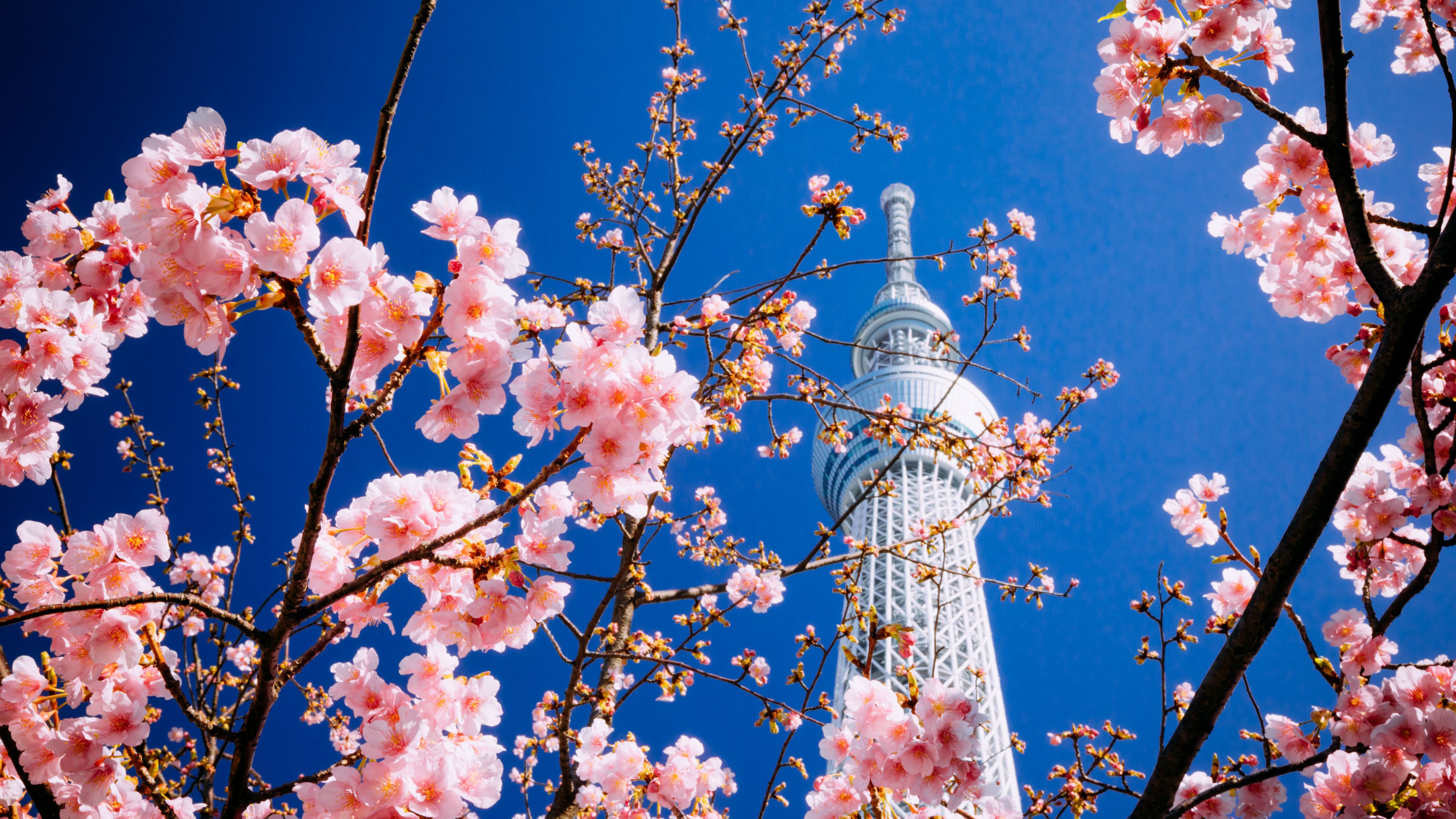 Building tower sakura 4k wallpaper Description :