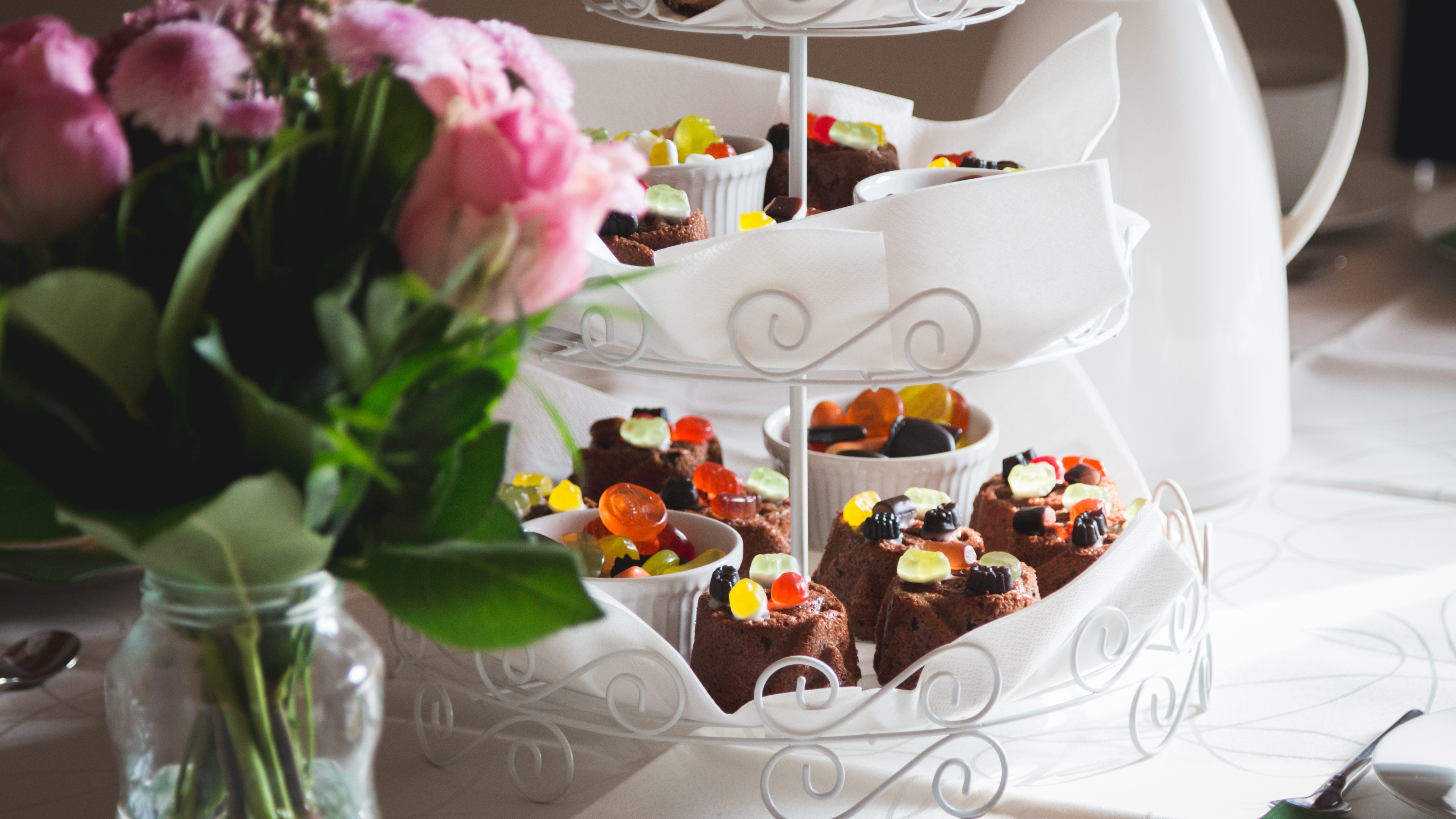 Cakes dessert serving still life 4k wallpaper
