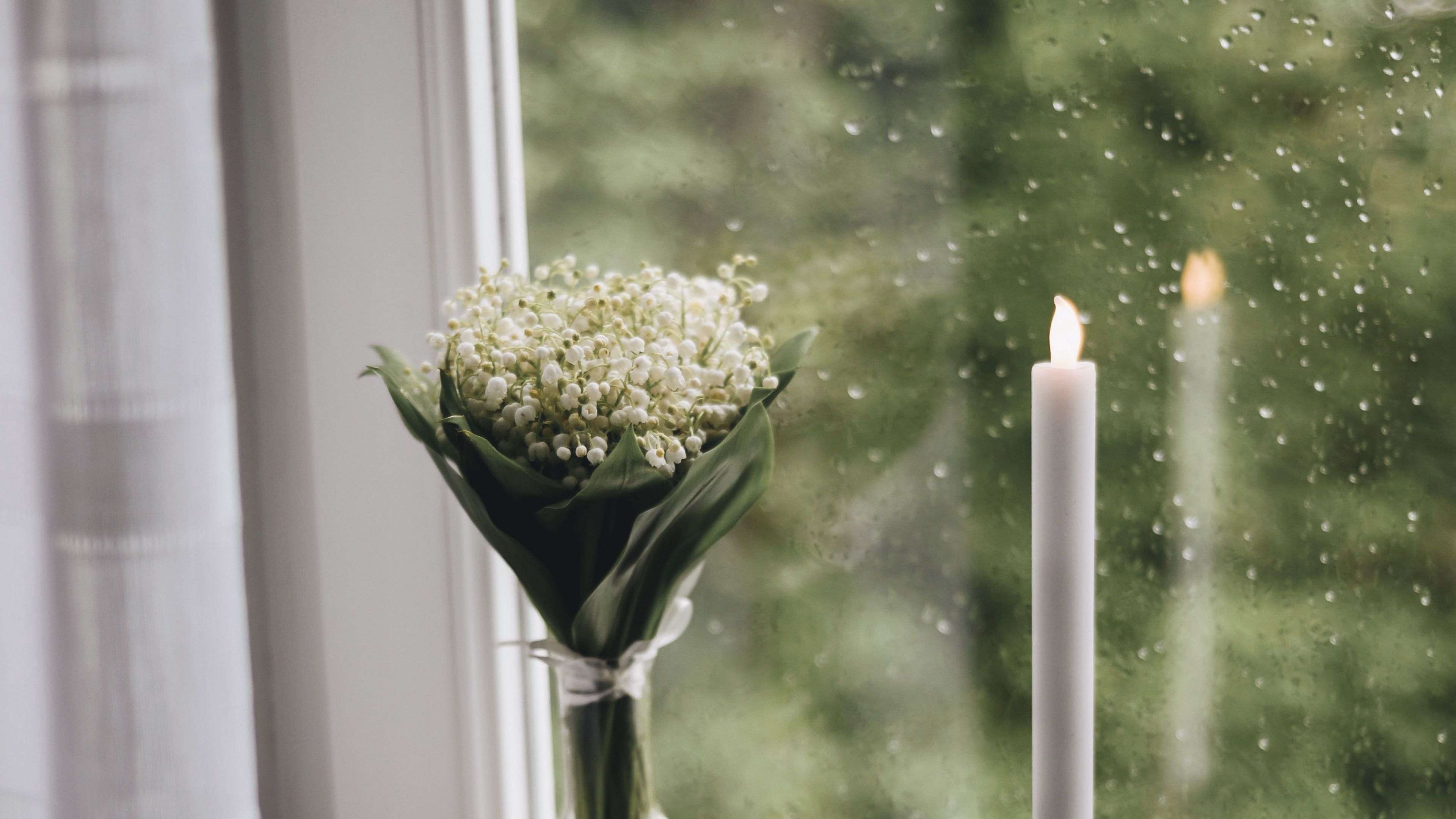 Candle window bouquet 4k wallpaper Description :