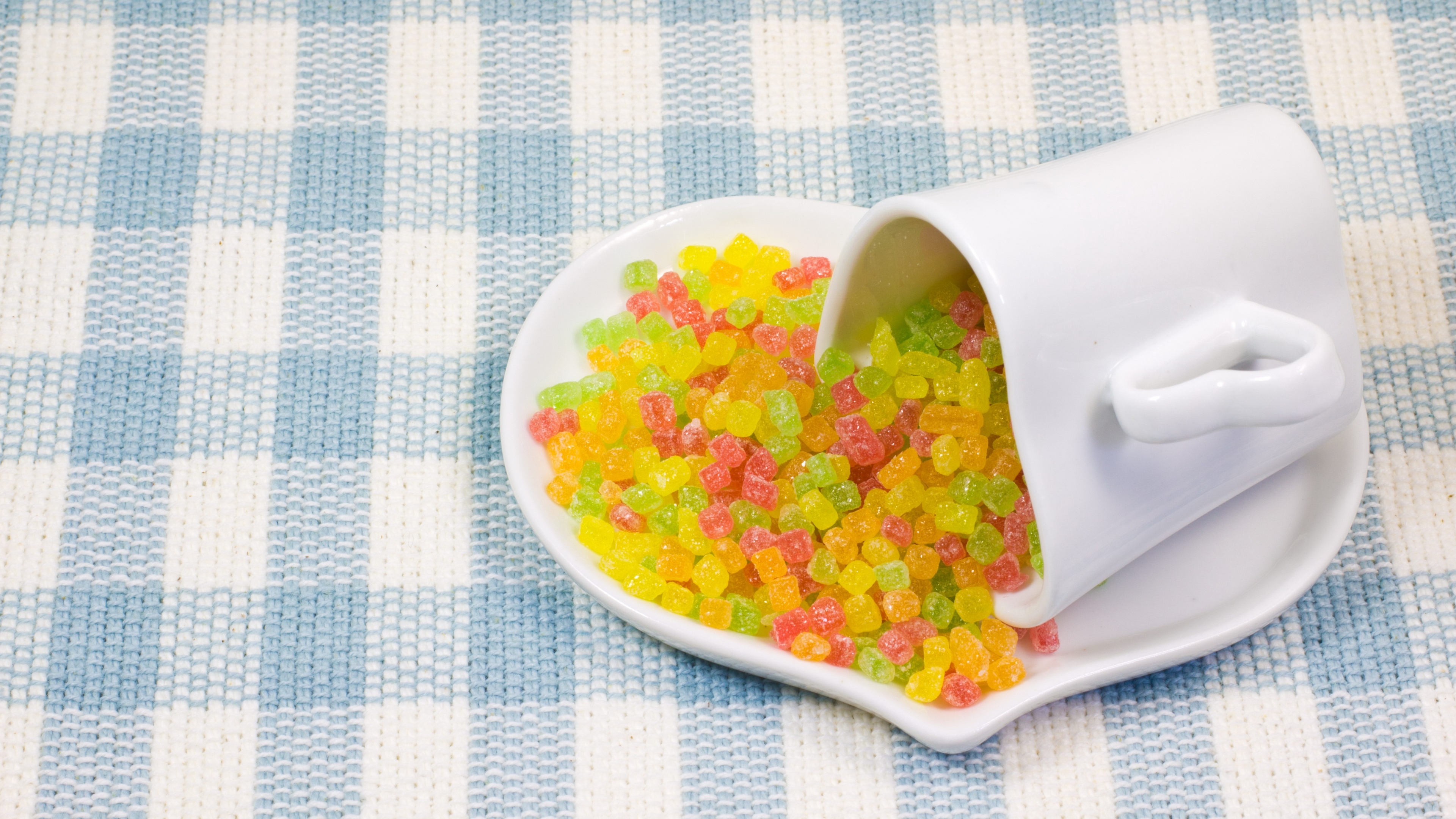 Candy jelly cup saucer table cloth 4k wallpaper Description :