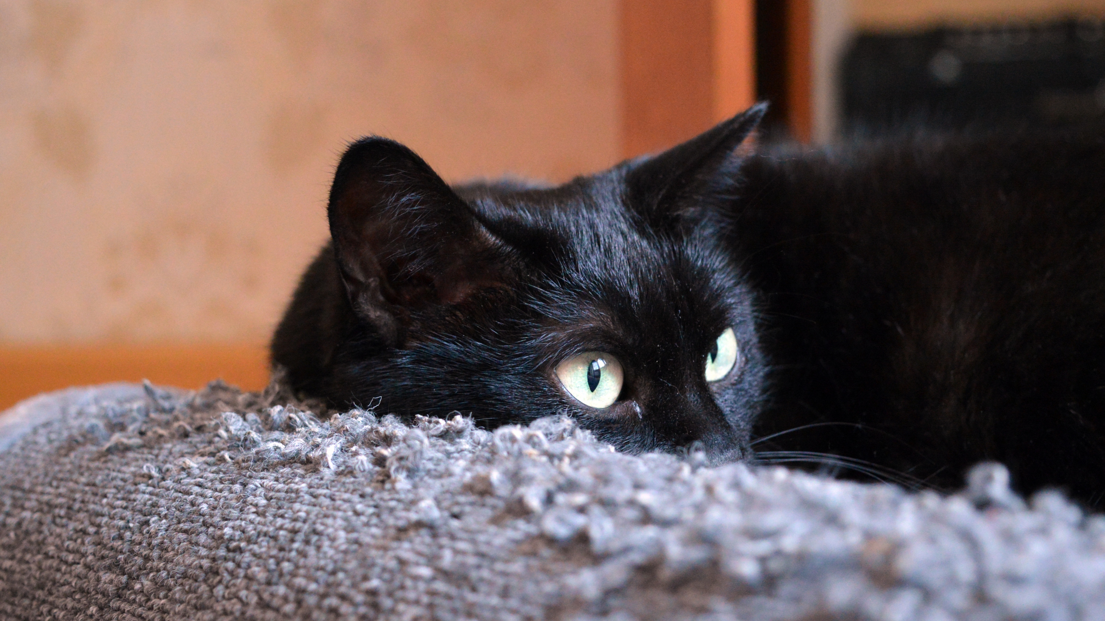 Download Cat black face lies 4k wallpaper from the above resolution from the directory Animals. And don't miss to check all from this kind of lovely popular desktop background, by viewing the similar ultra high definition wallpapers at HOME.