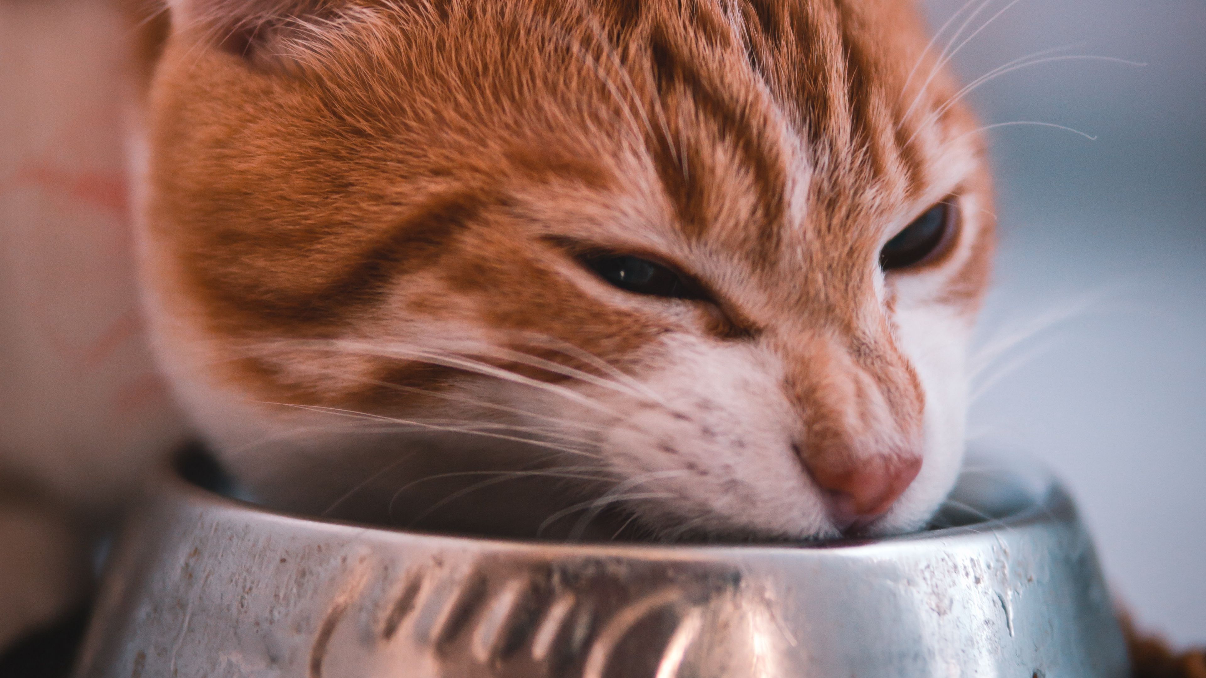 Cat bowl eating 4k wallpaper