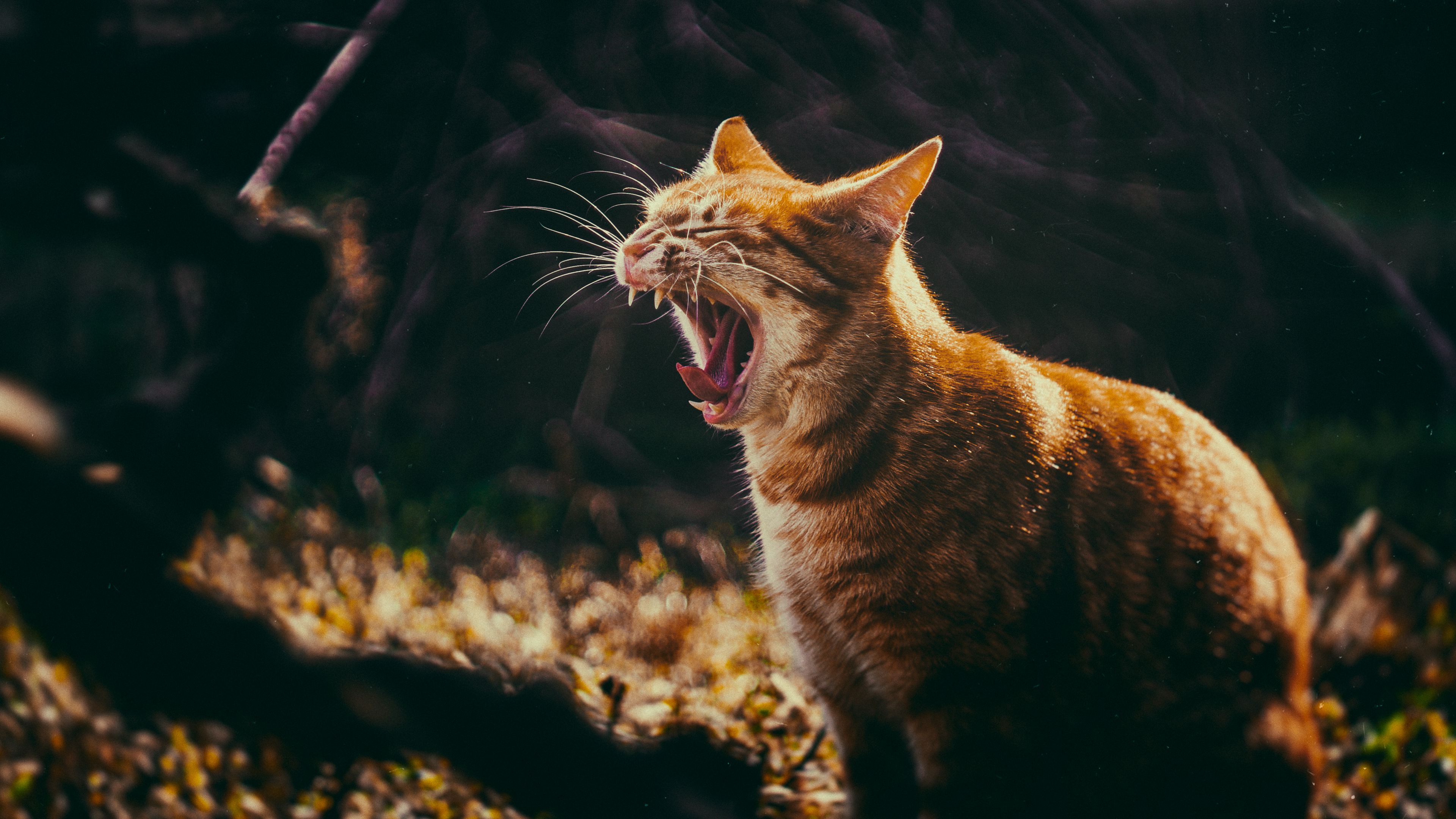 Cat grin yawn 4k wallpaper