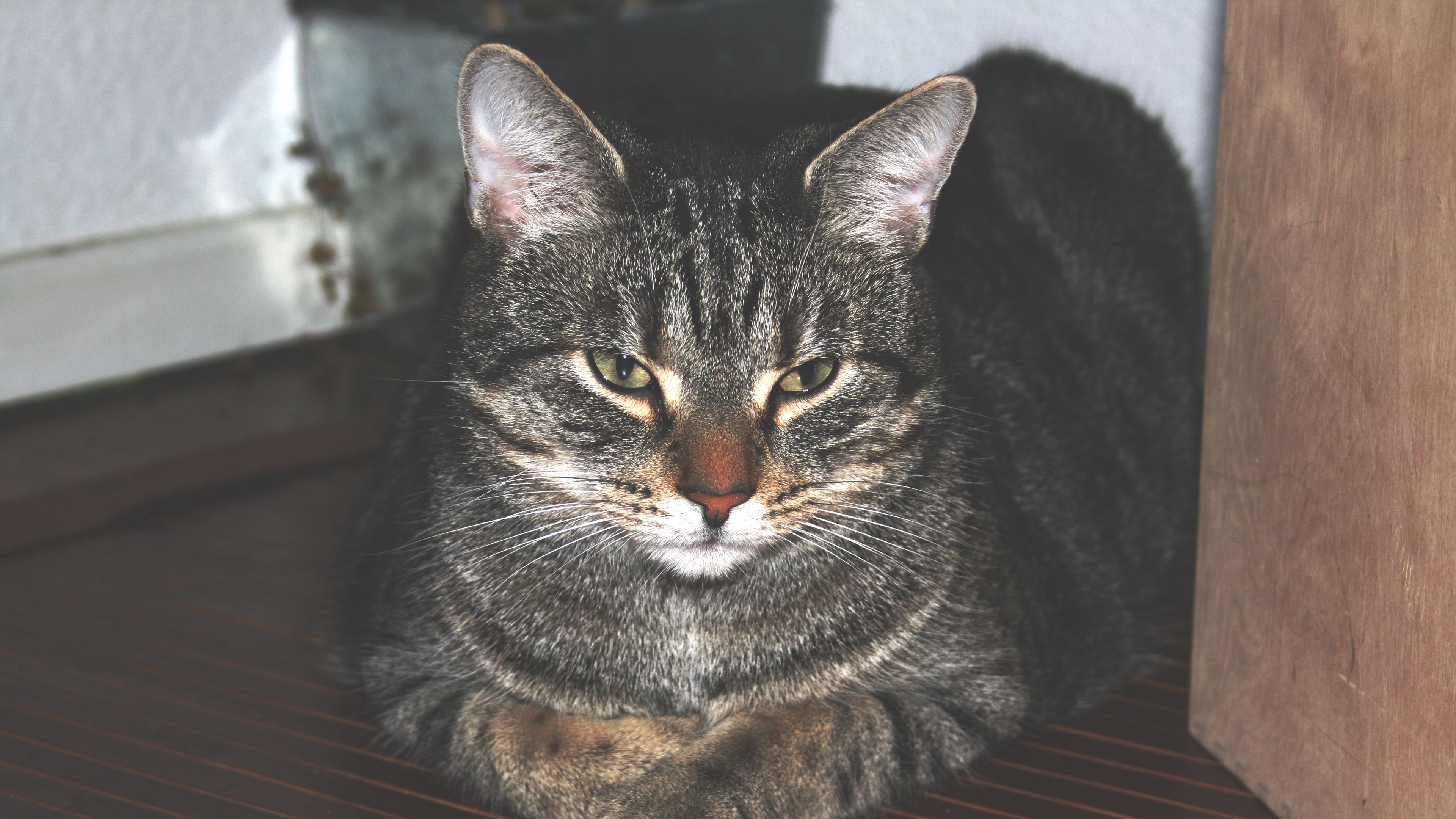 Cat home lying striped 4k wallpaper