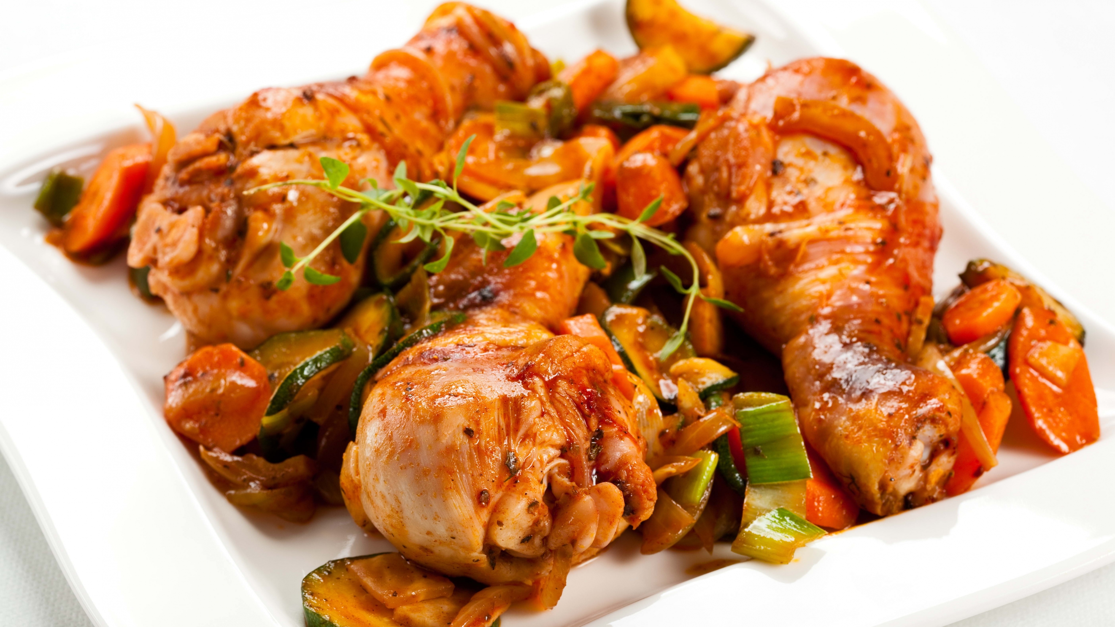Chicken legs frying vegetables gravy 4k wallpaper Description :
