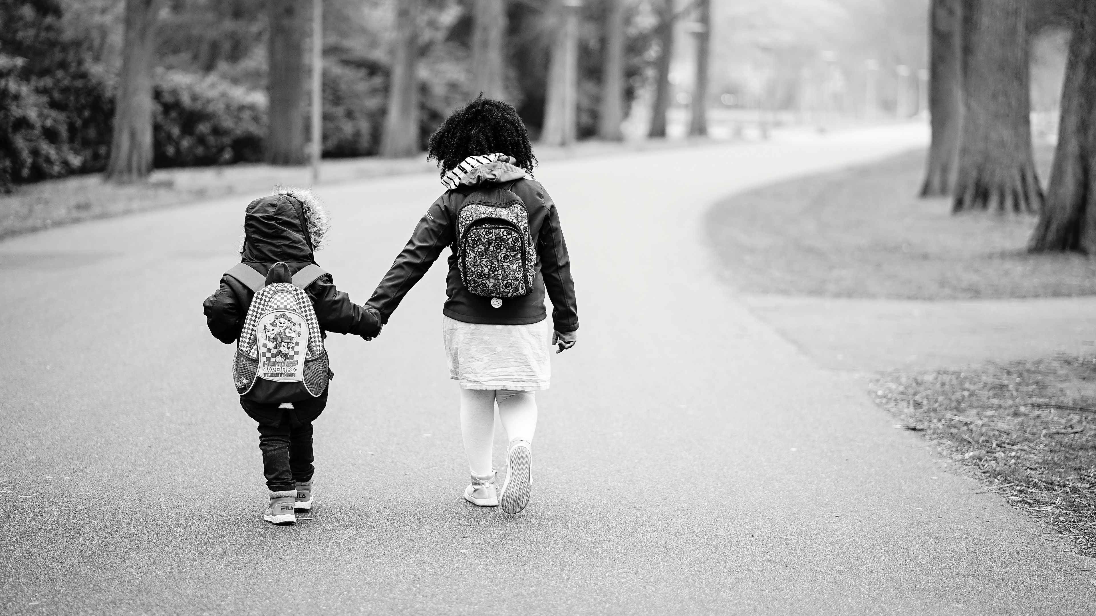 Children path bw 4k wallpaper Description :