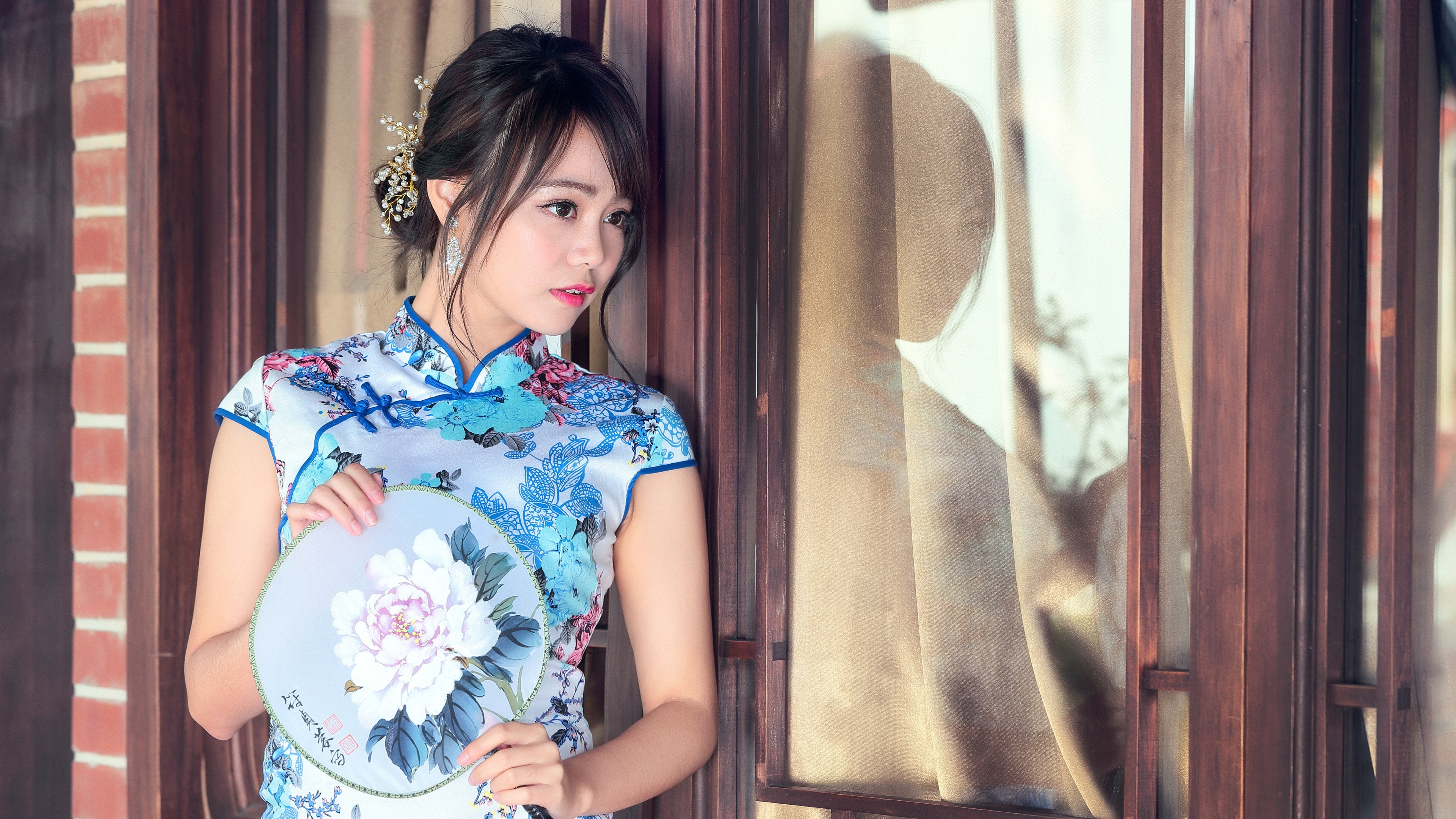 Chinese blue cheongsam girl 8k wallpaper Description :