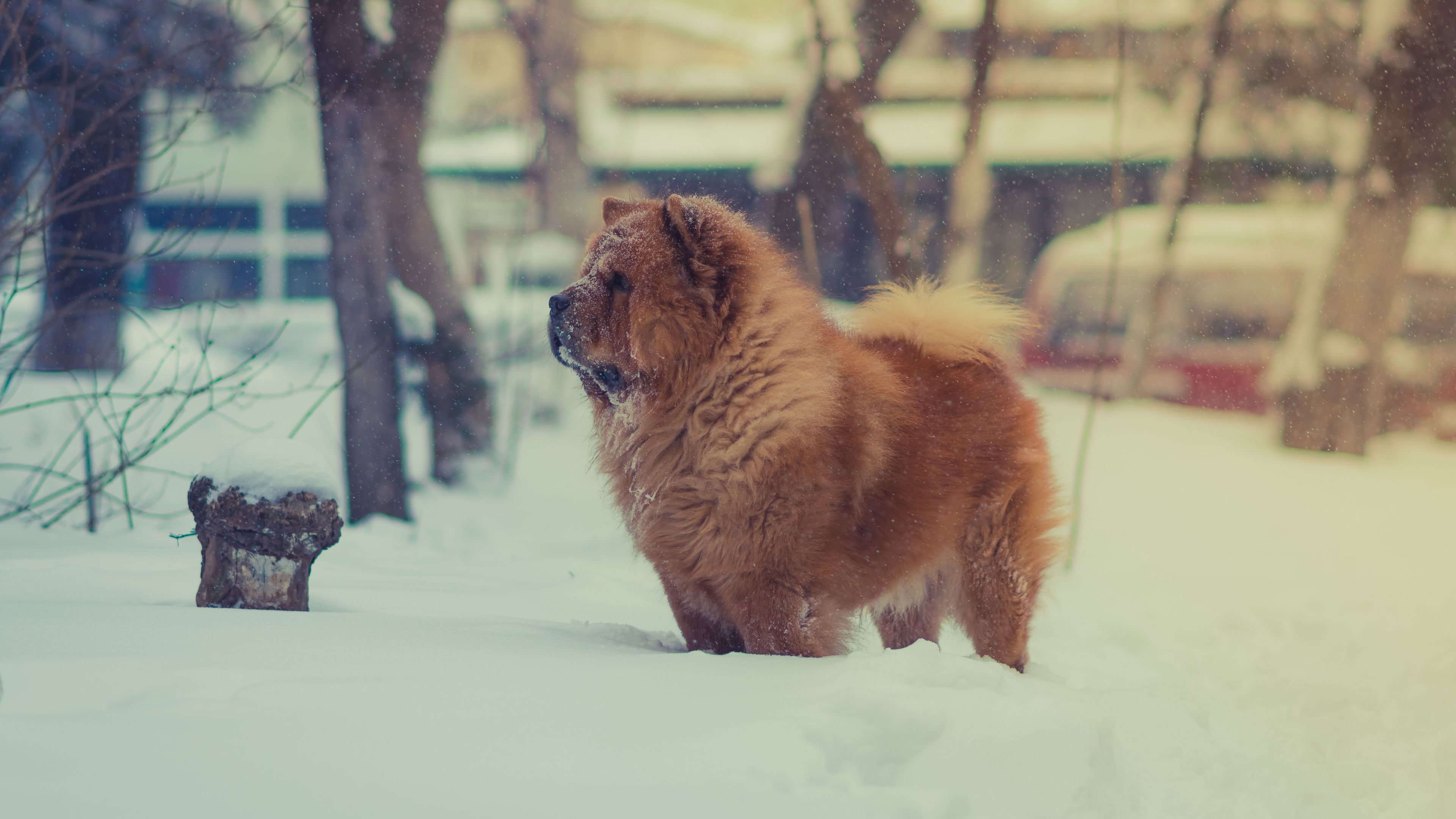 Chow chow dog snow 4k wallpaper
