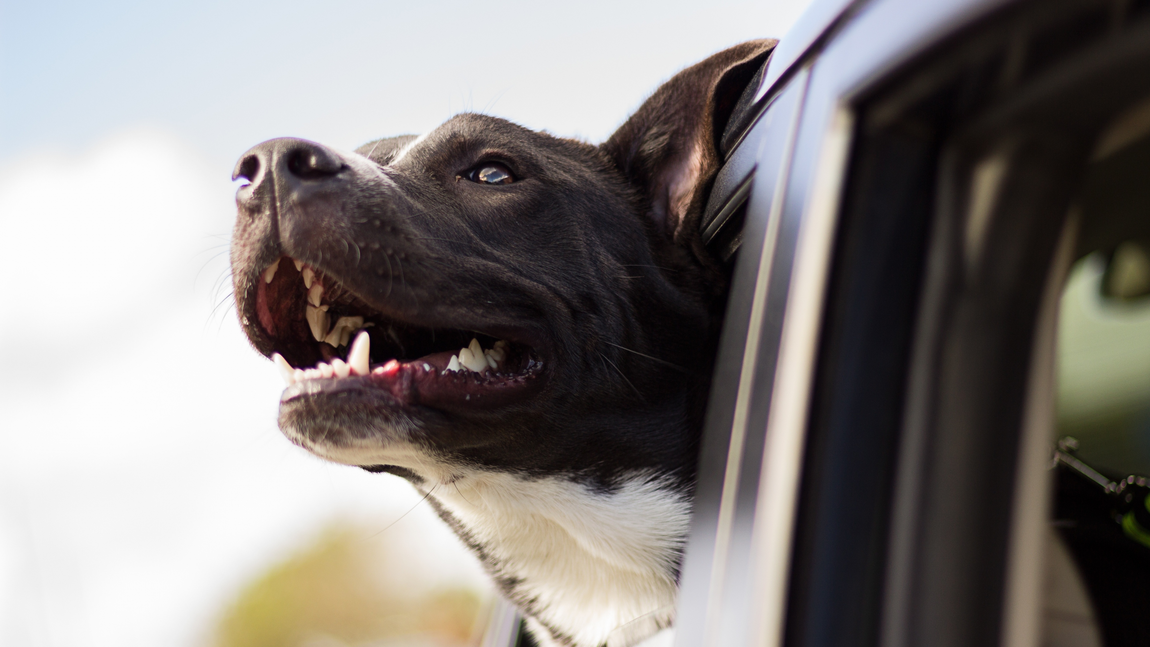 Dog face car wind 4k wallpaper