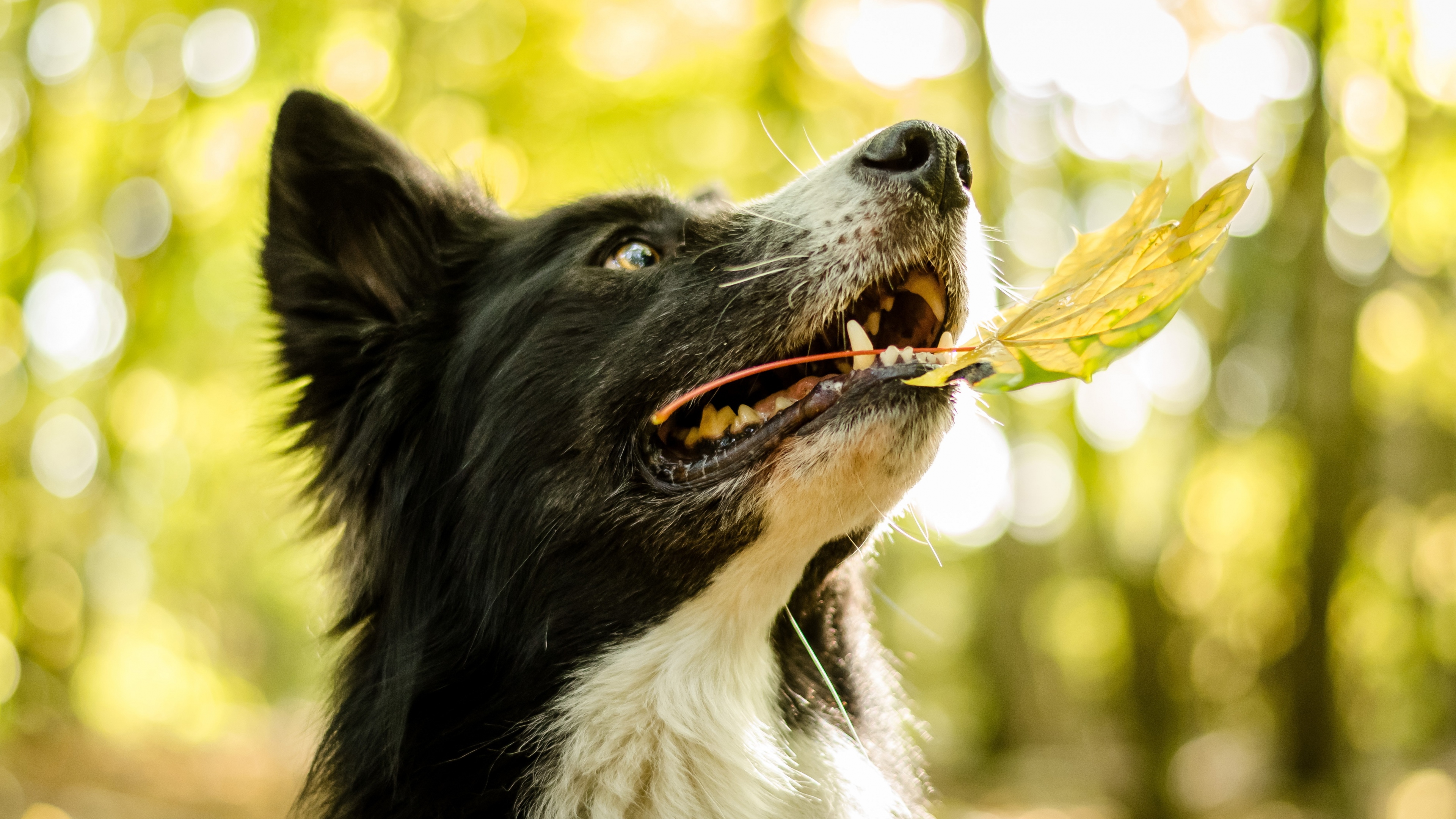 Dog face leaves playful 4k wallpaper
