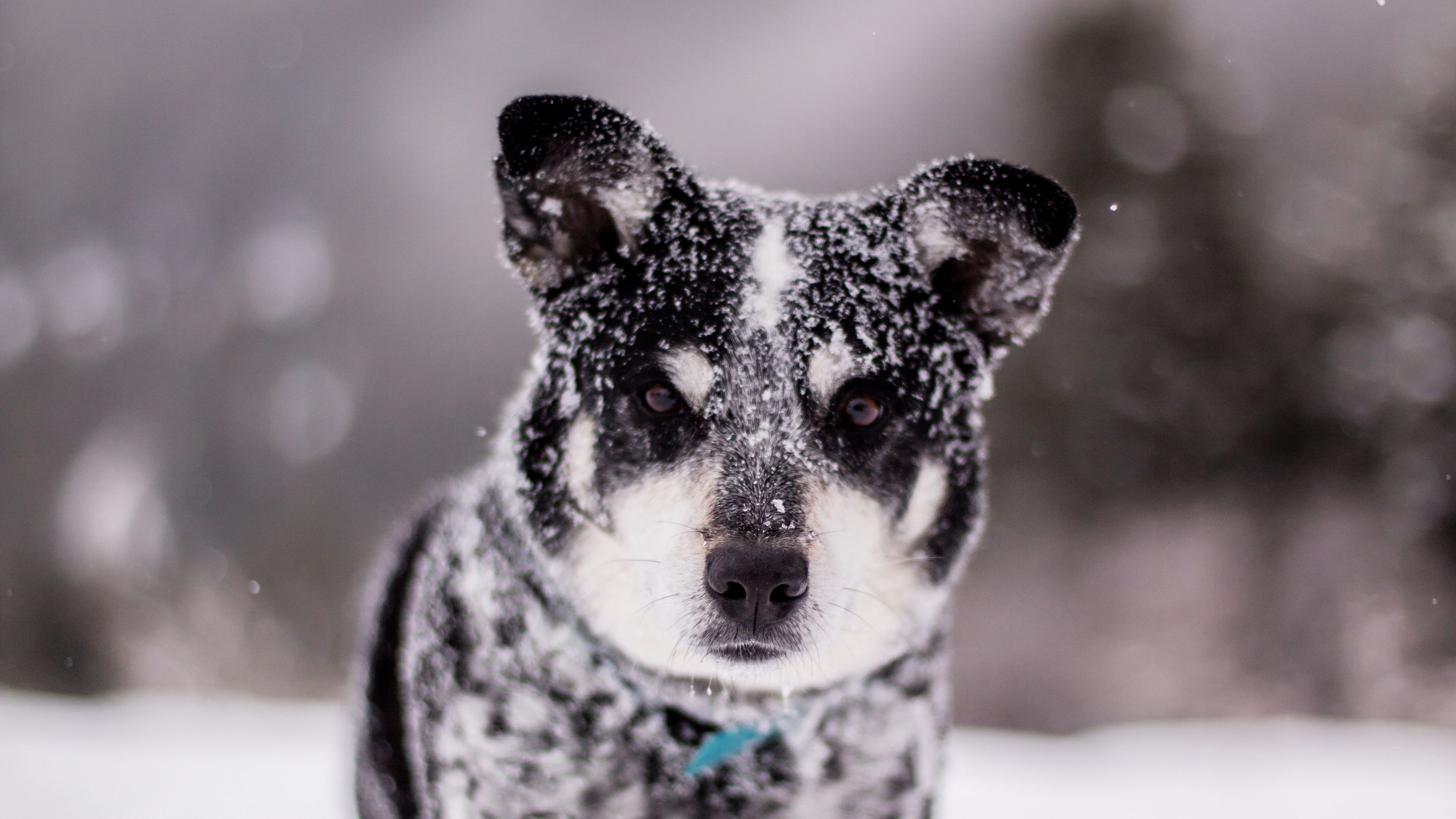 Dog snow wet 4k wallpaper