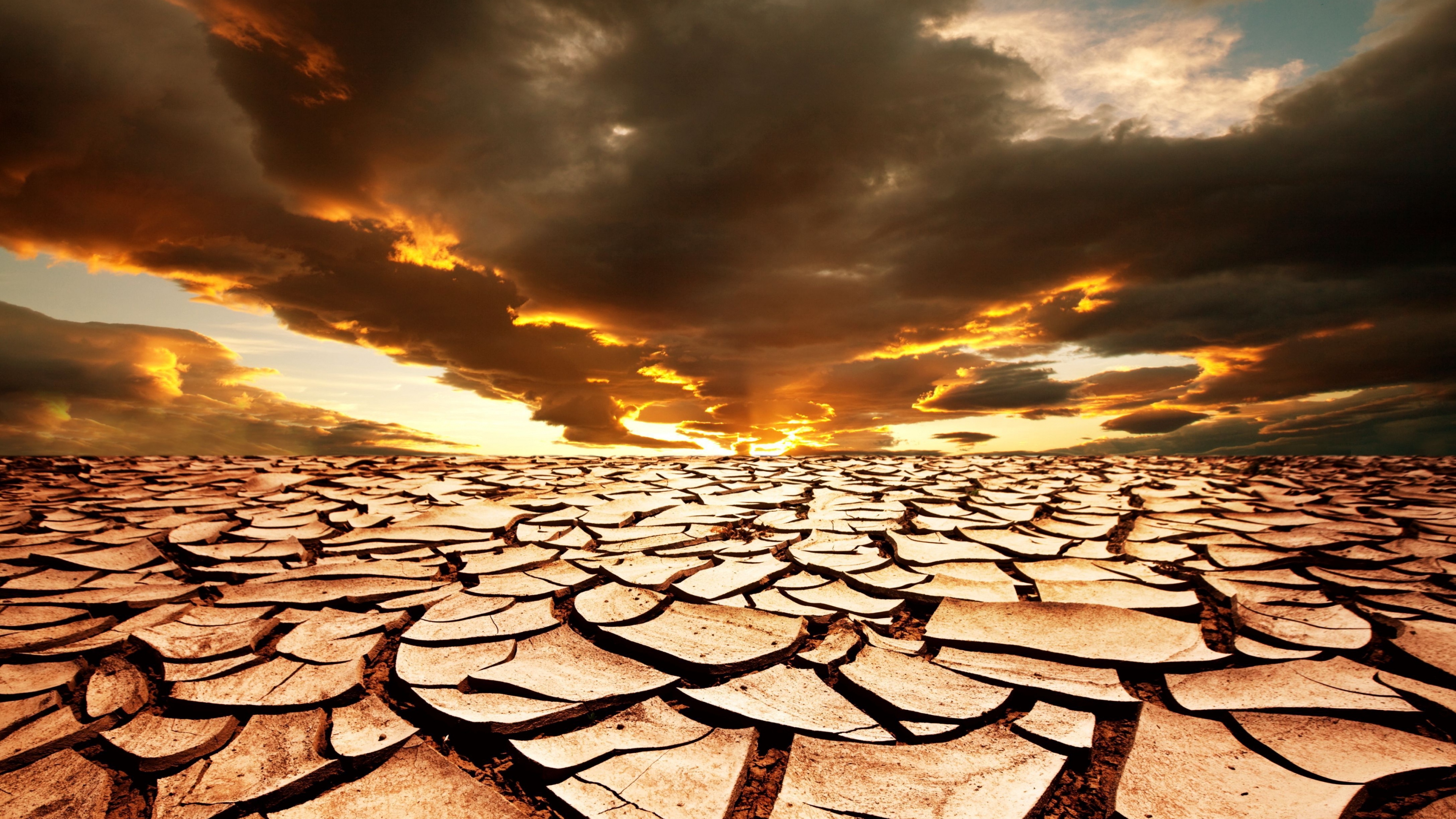 Drought earth cracks lake dead clouds sky decline shadows heavy 4k wallpaper Description :