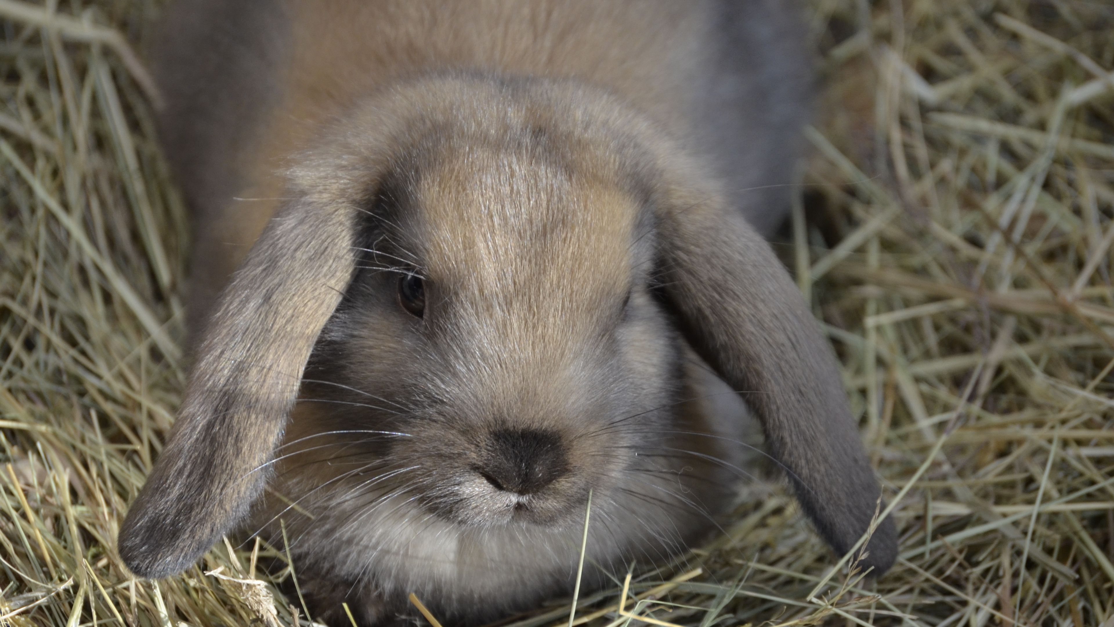 Dwarf rabbit rabbit down ears hay 4k wallpaper Description :