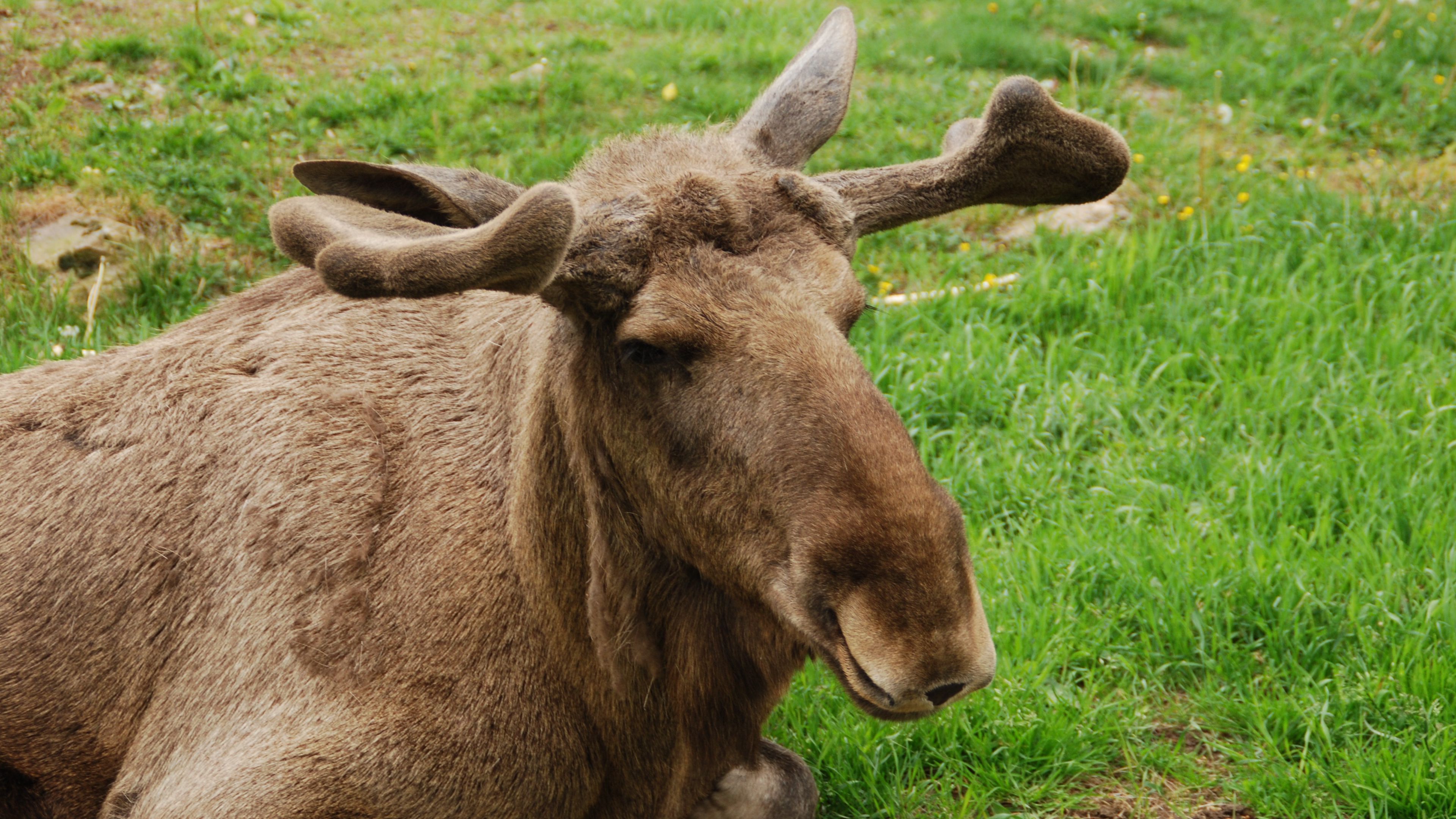 Elk face lying grass 4k wallpaper Description :