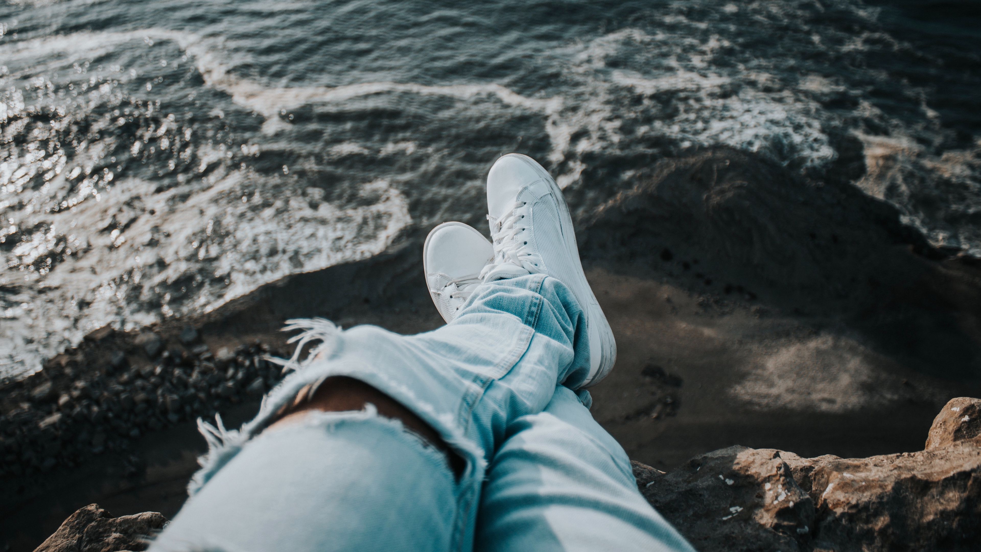 Feet sneakers sea shore 4k wallpaper Description :