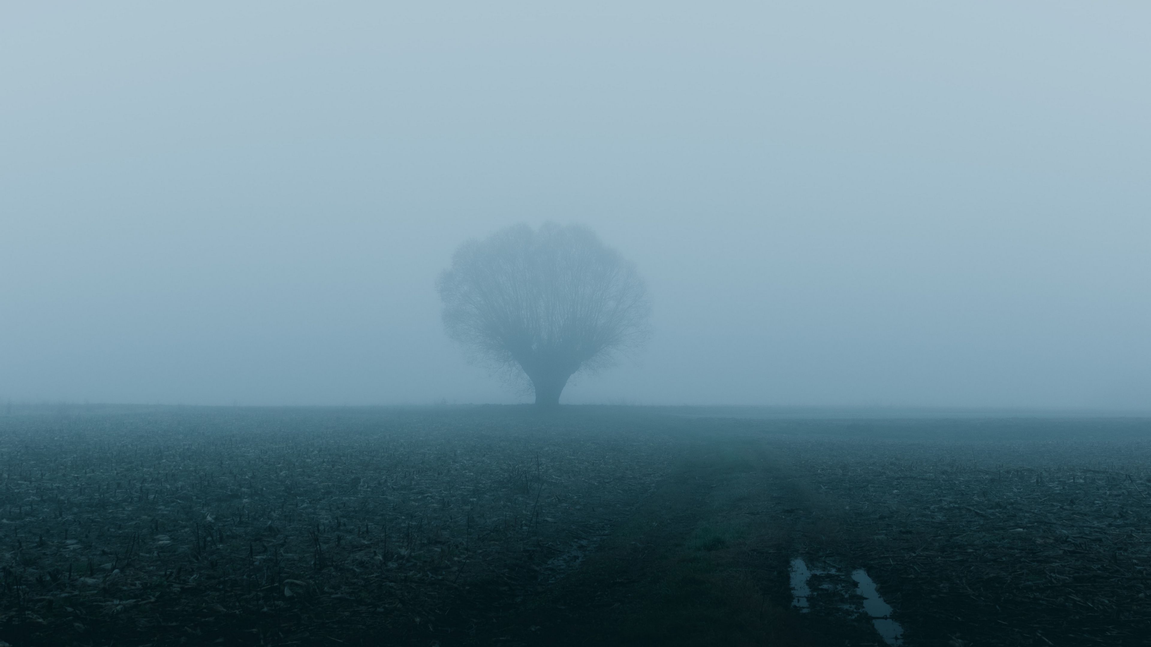 Field tree fog image 4k wallpaper Description :