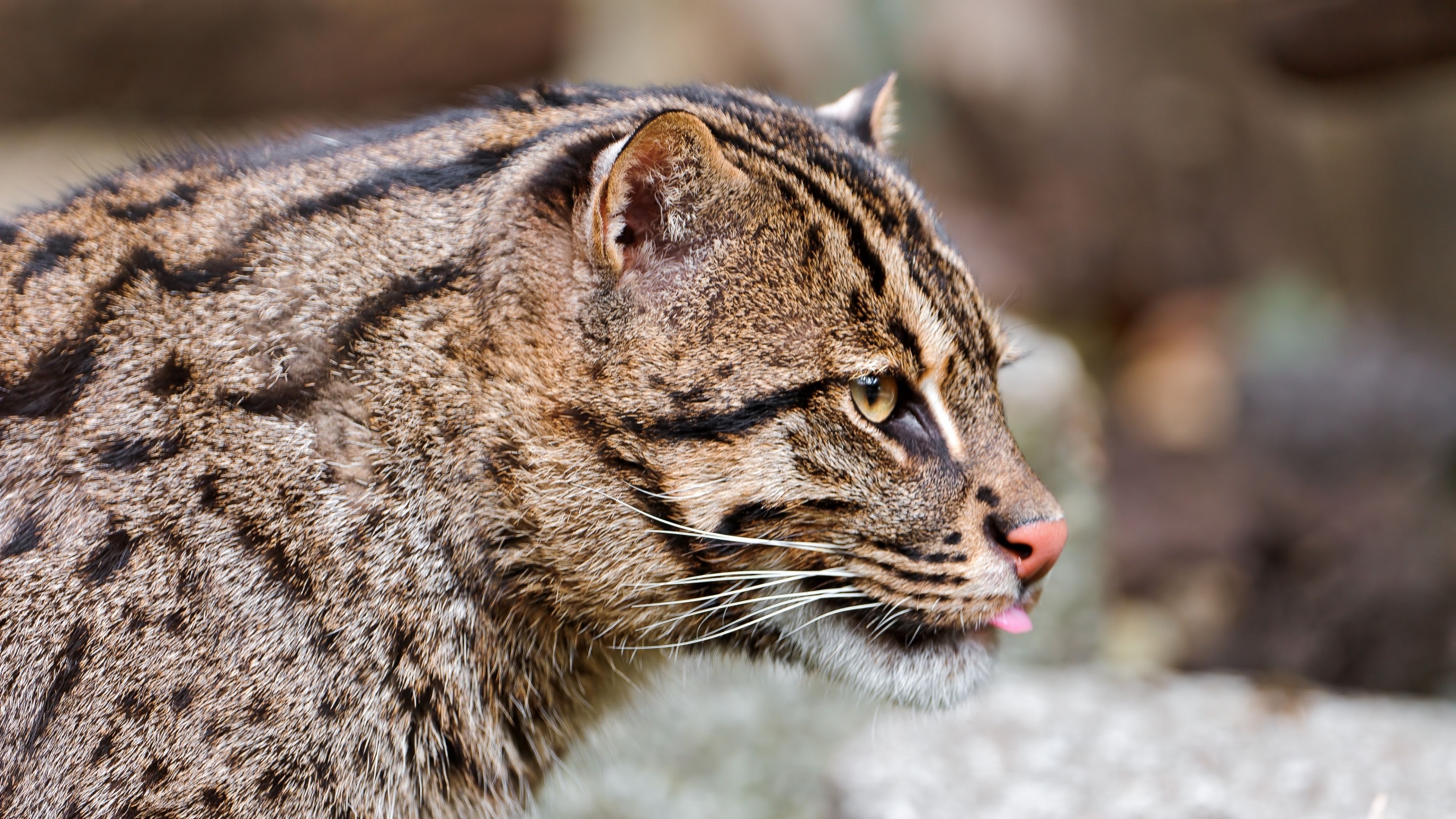 Fishing cat muzzle tongue profile spotted big cat 4k wallpaper