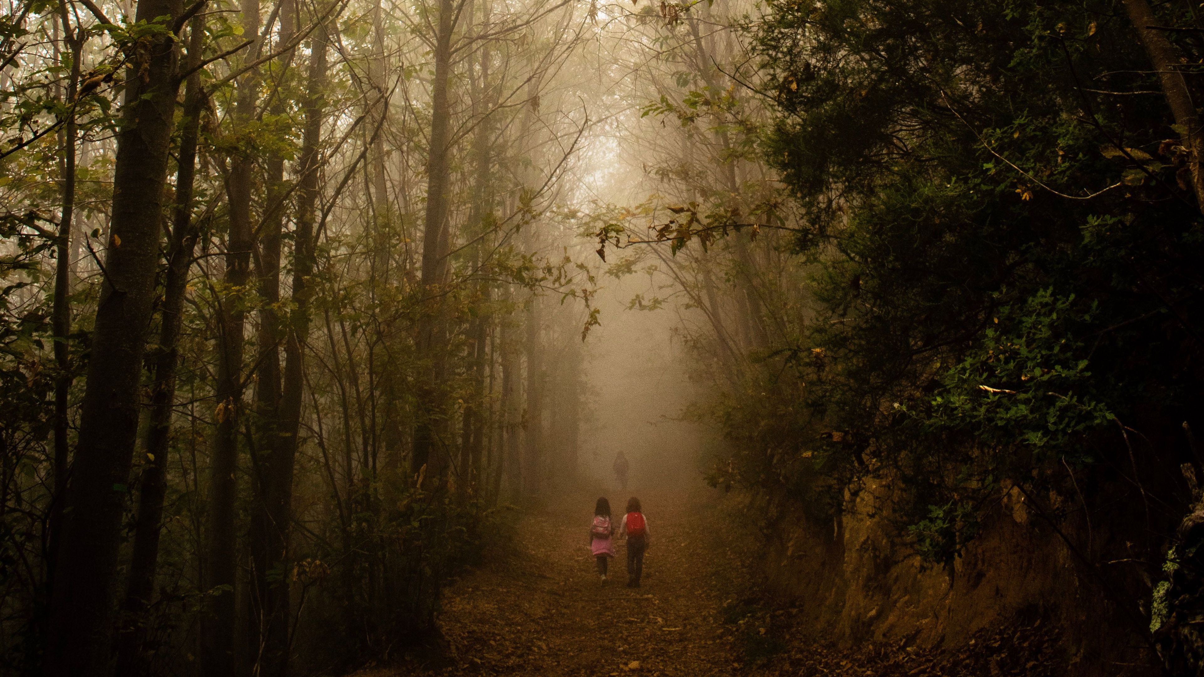 Fog forest path 4k wallpaper Description :