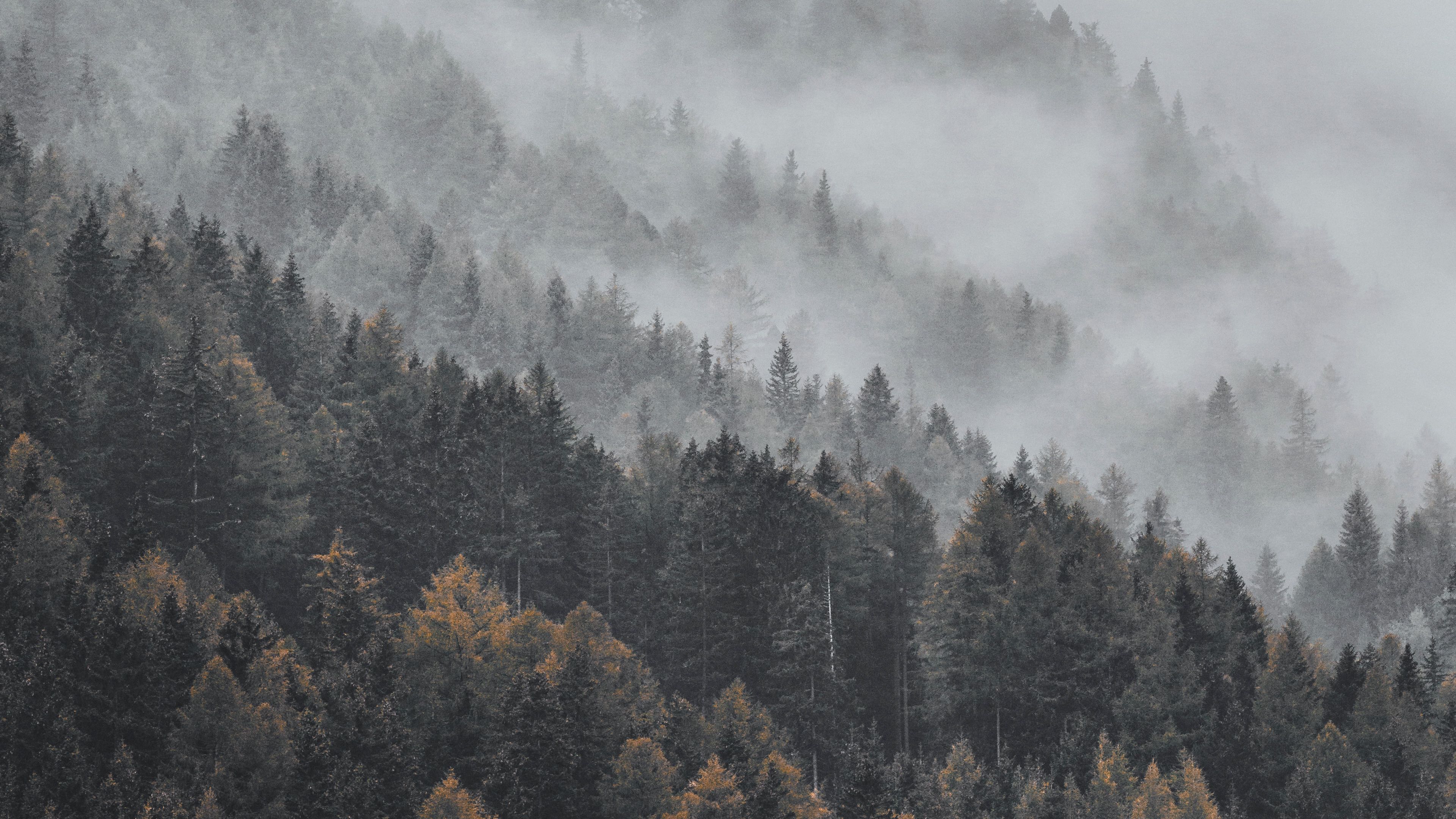 Forest fog trees pi 4k wallpaper