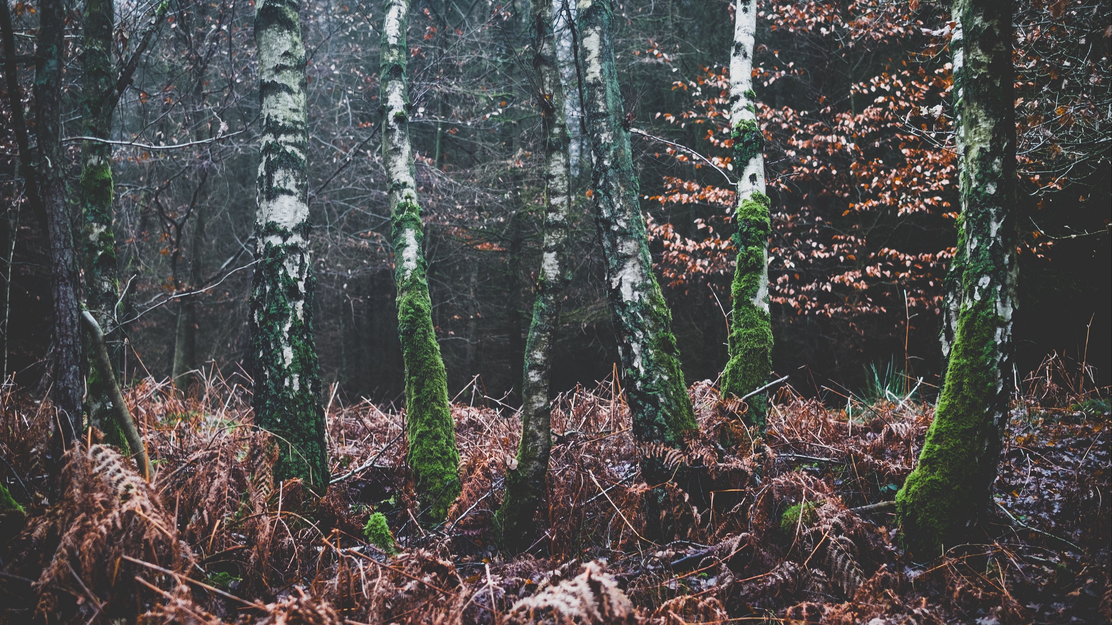 Forest trees moss autumn 4k wallpaper