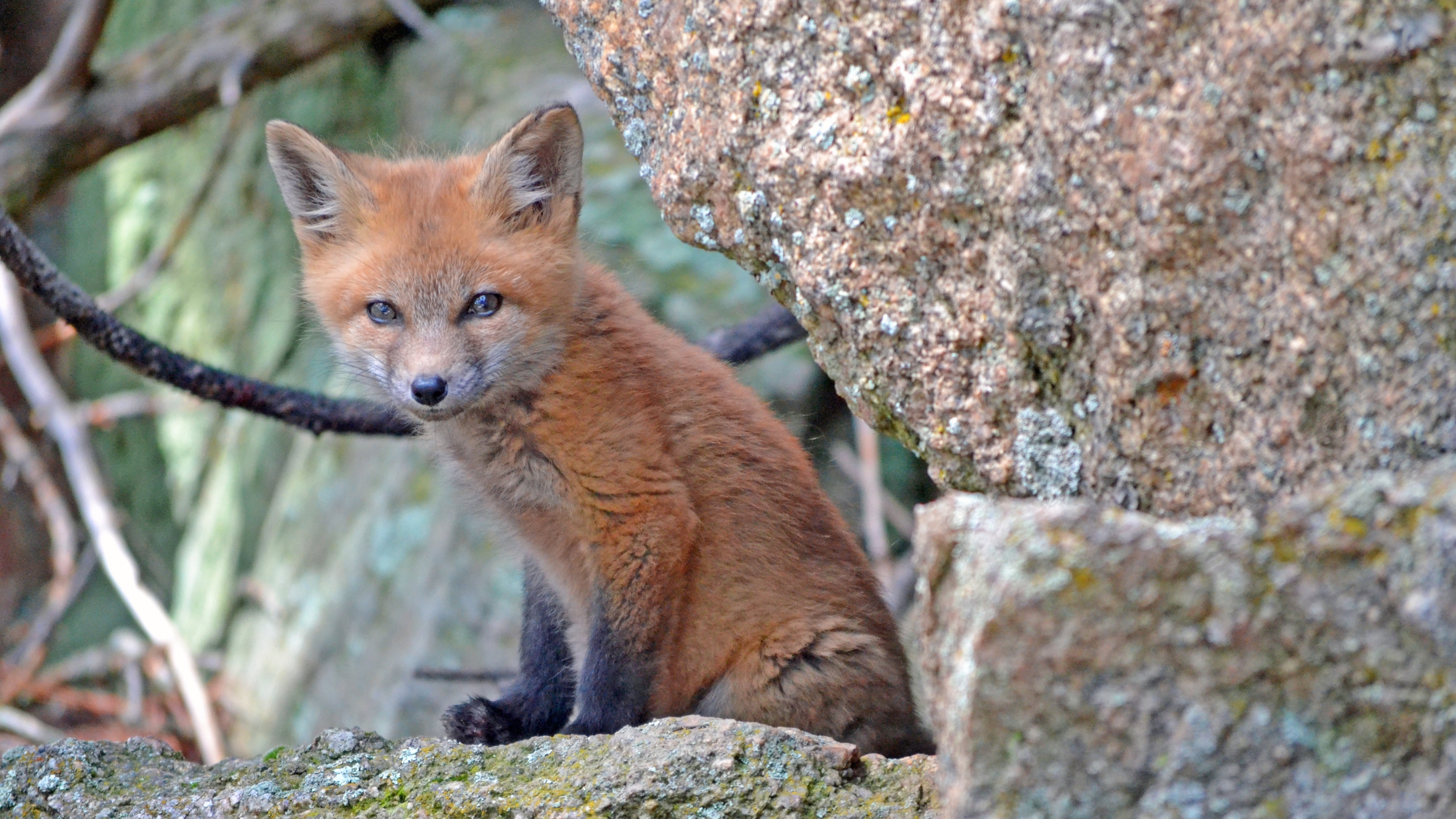 Fox cub baby sit stones moss 4k wallpaper Description :