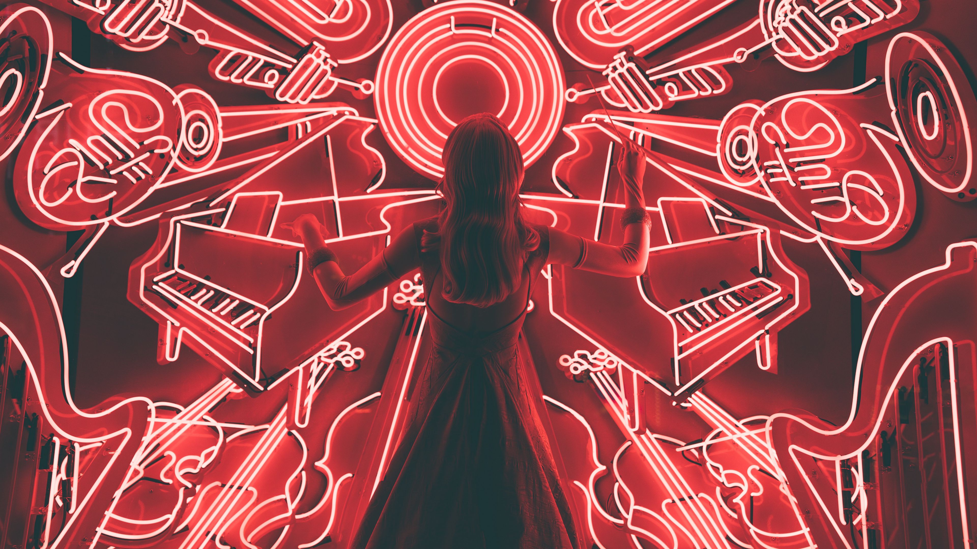 Girl conducting light back 4k wallpaper