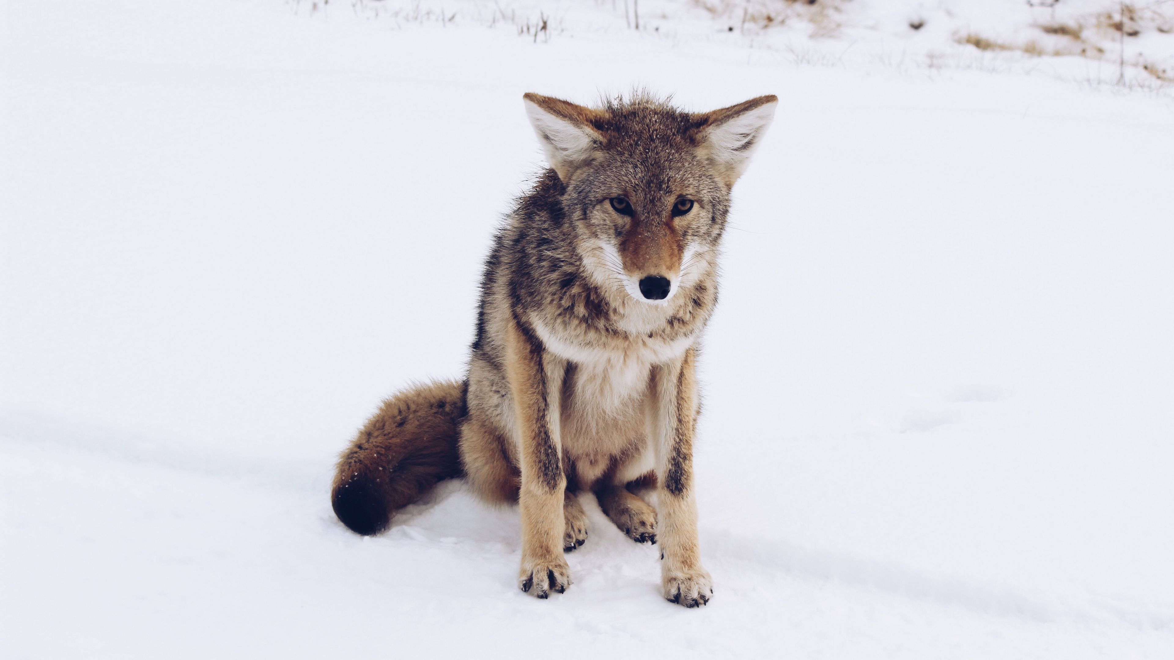 Gray fox snow predator 4k wallpaper