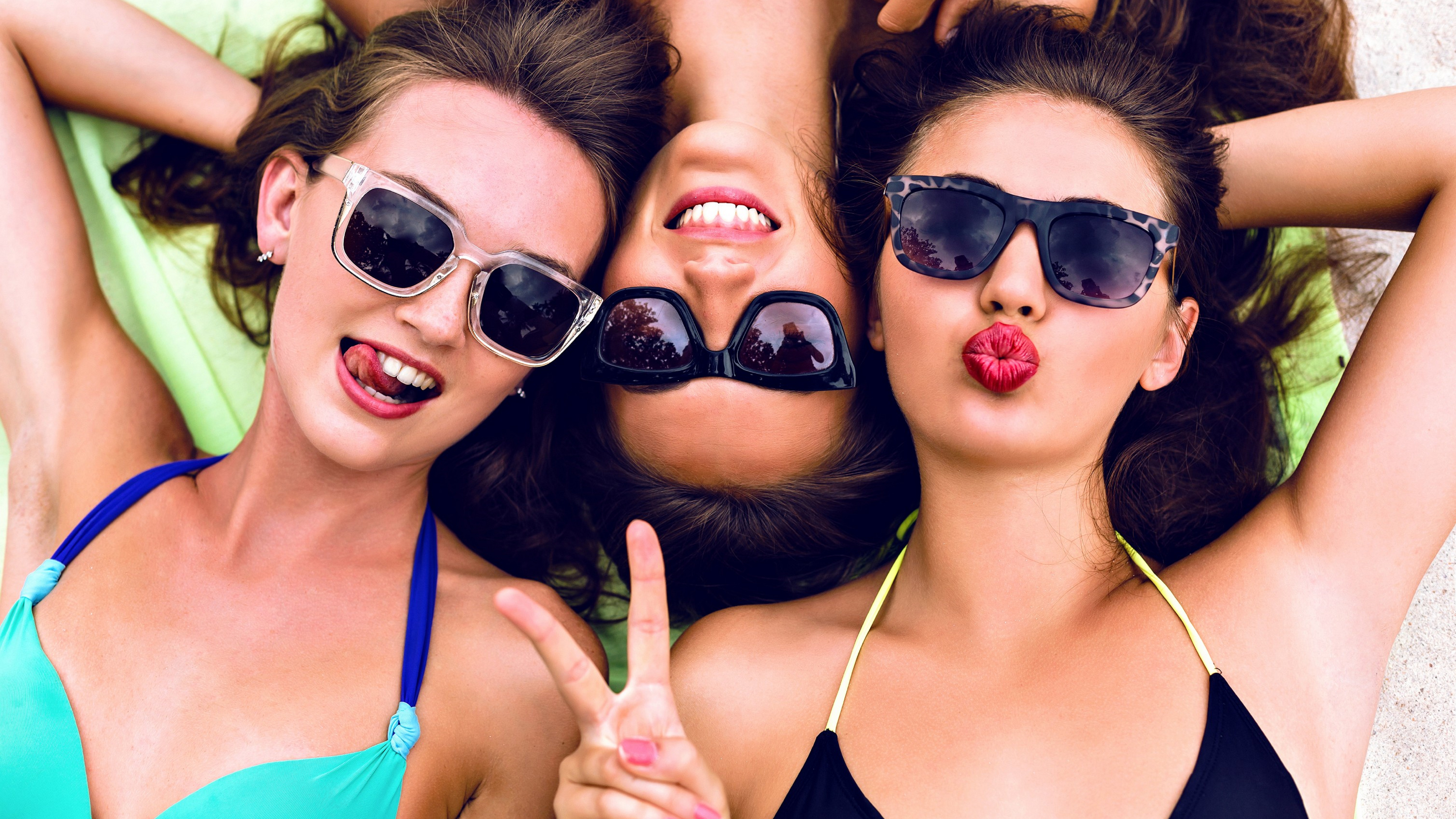 Group of women model girls smiling women with glasses friends 8k wallpaper Description :