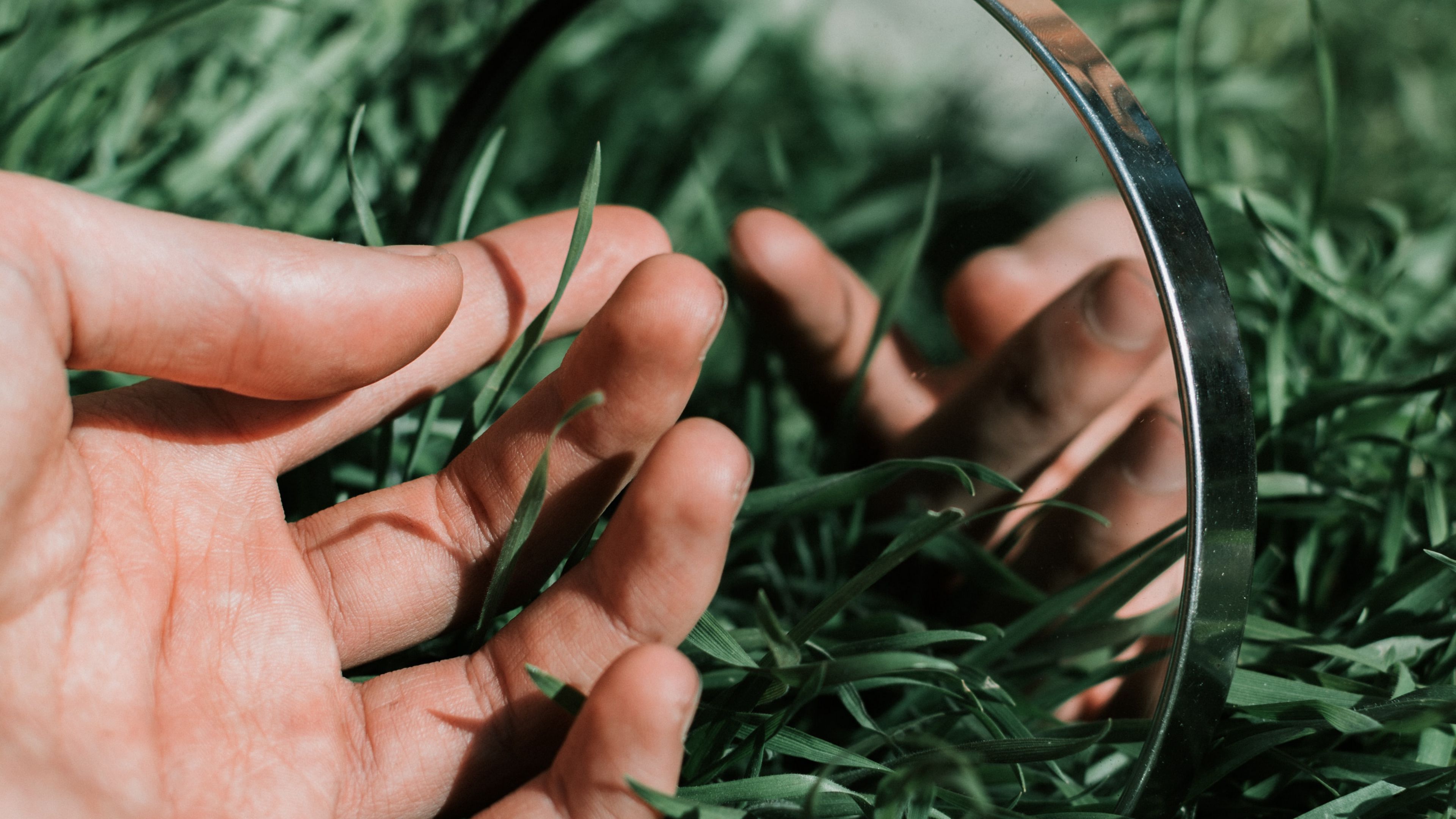 Hand mirror grass 4k wallpaper Description :