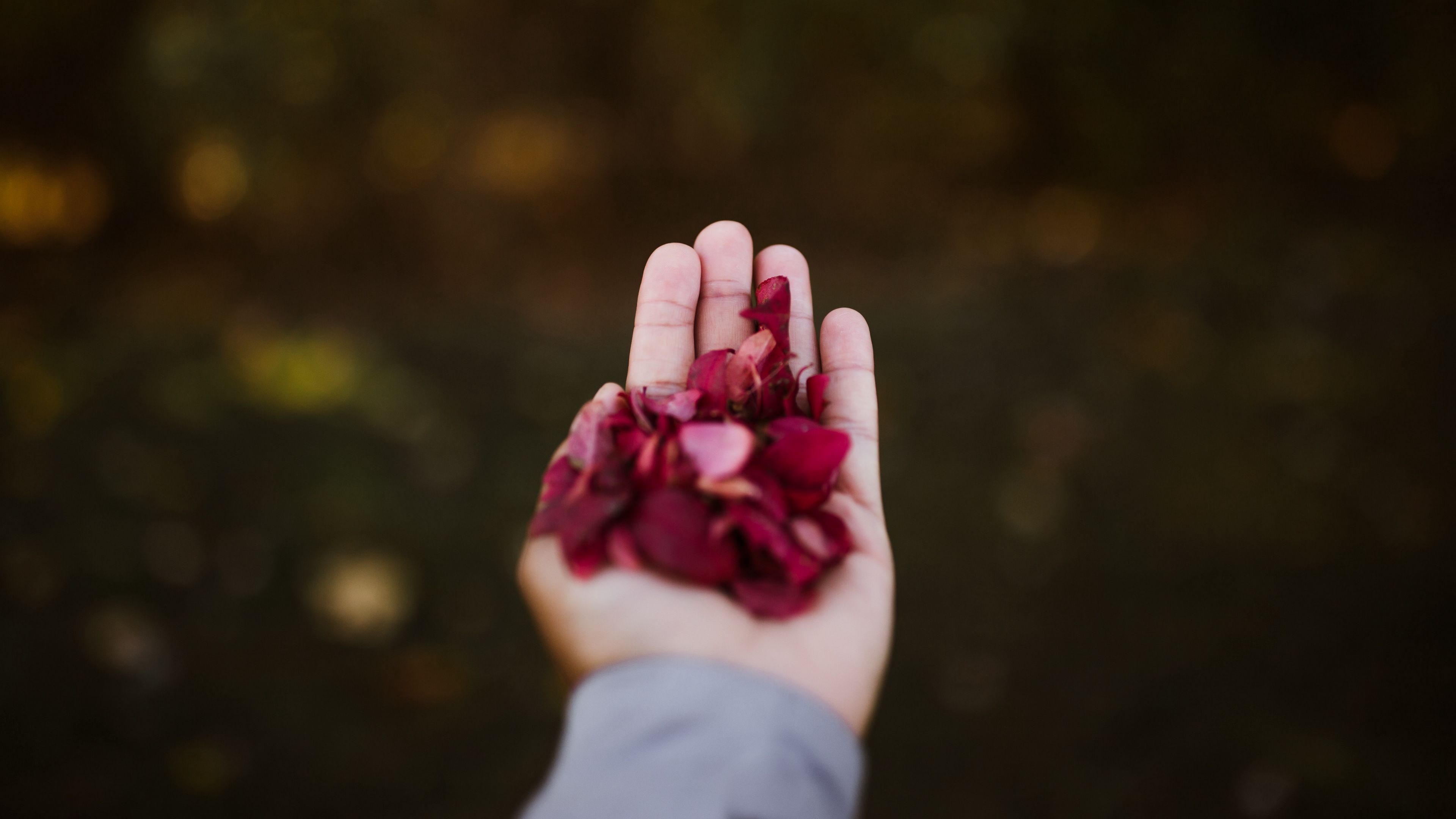 Hand petals red 4k wallpaper Description :