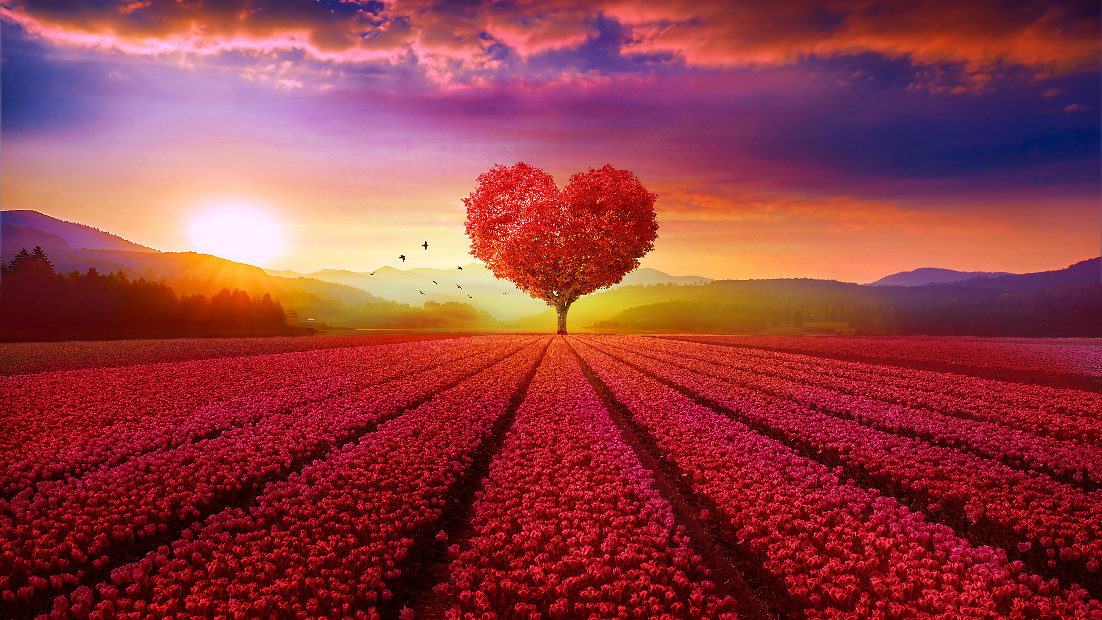 Heart tree field 4k 4k wallpaper Description :