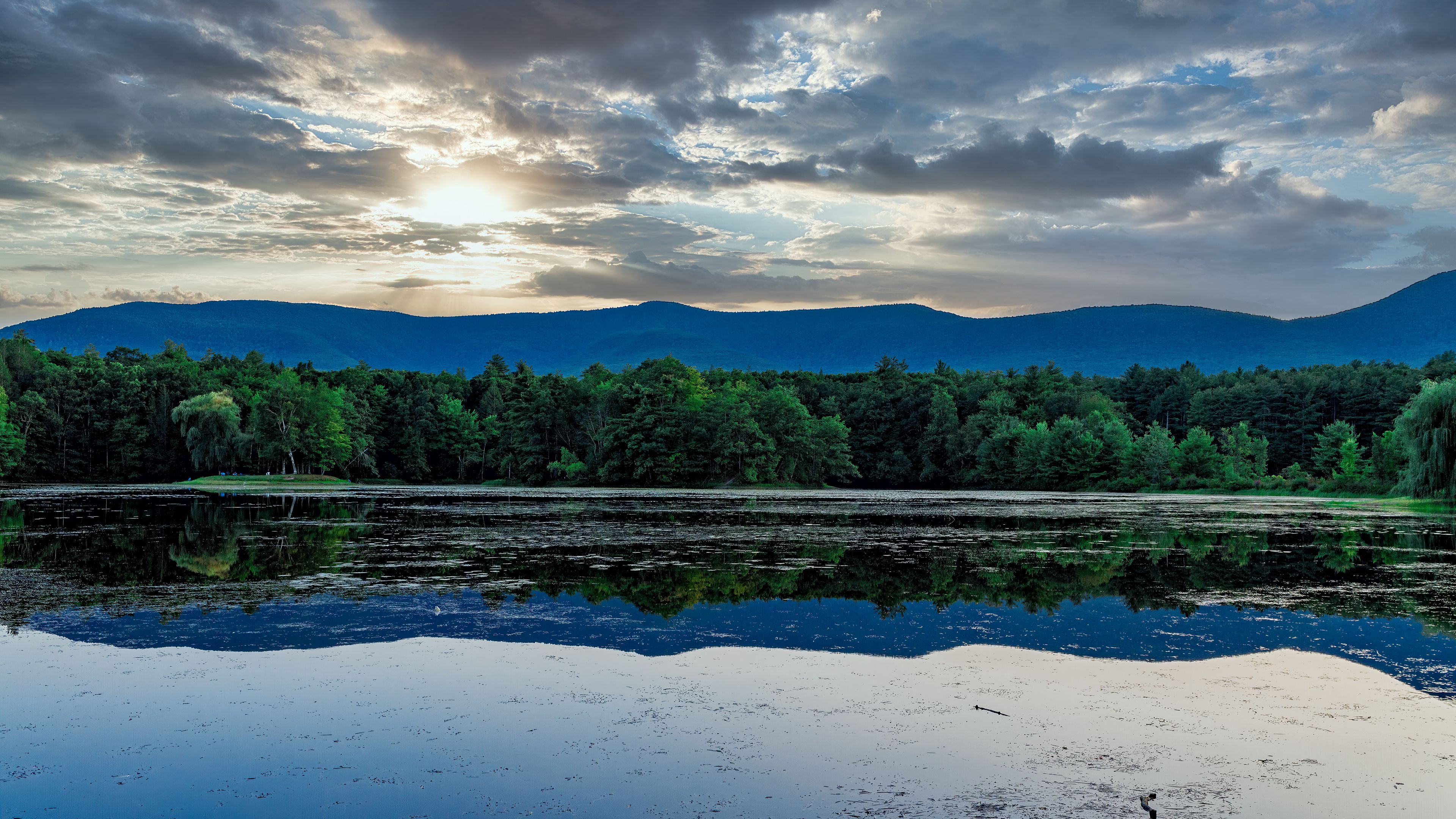 Hill water trees 4k wallpaper