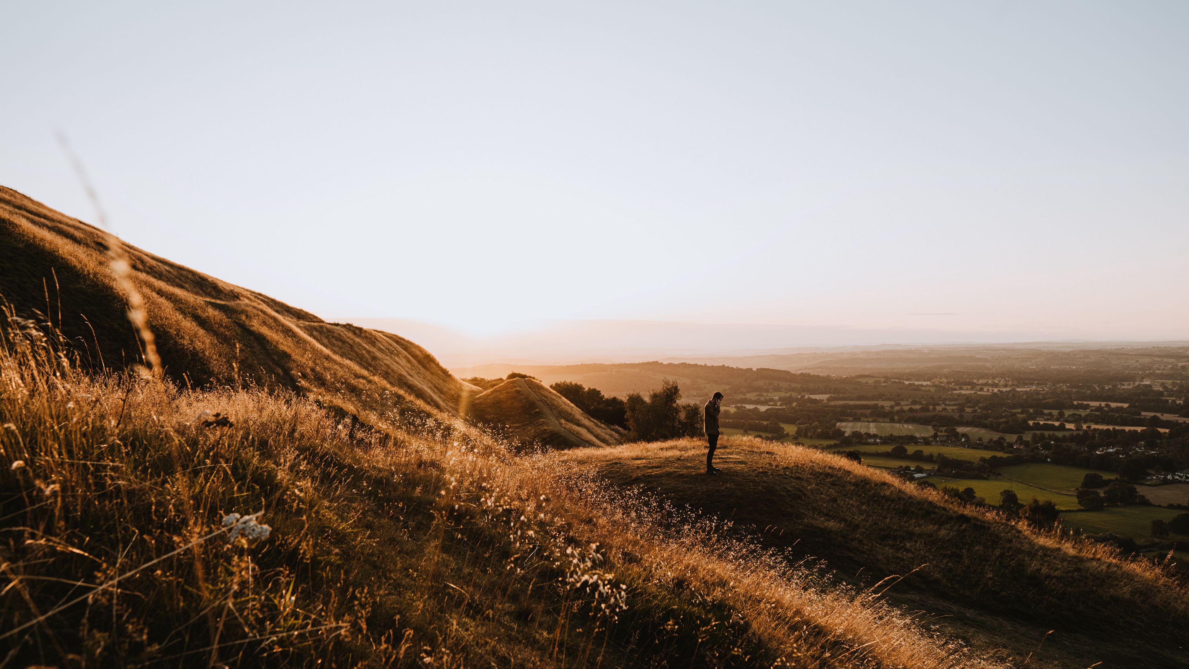Hills man silhouette 4k wallpaper