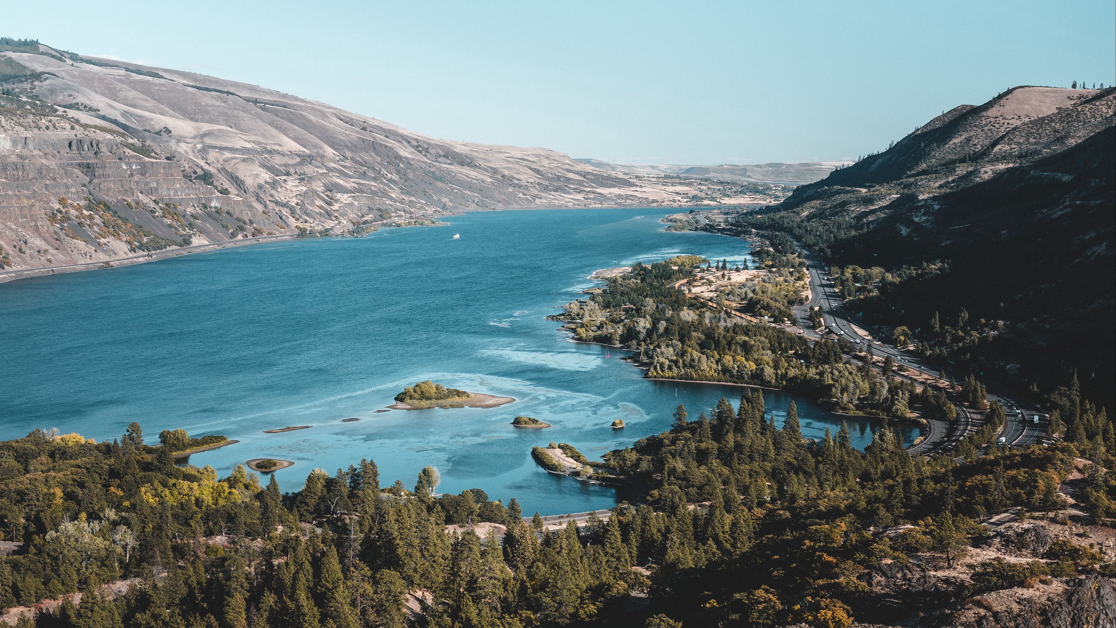 Hills river aerial view 4k wallpaper