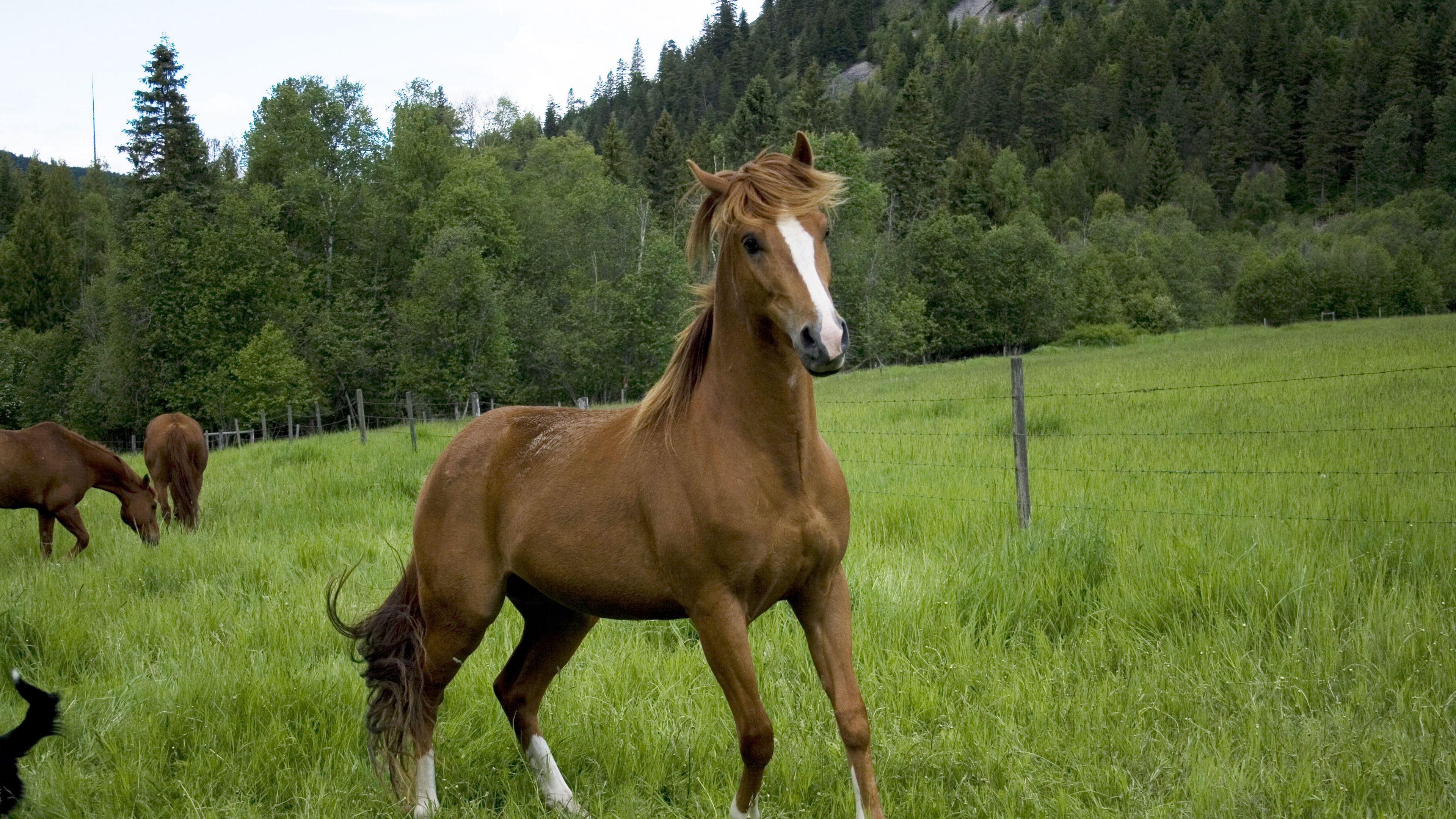 Horse field grass tree 4k wallpaper Description :