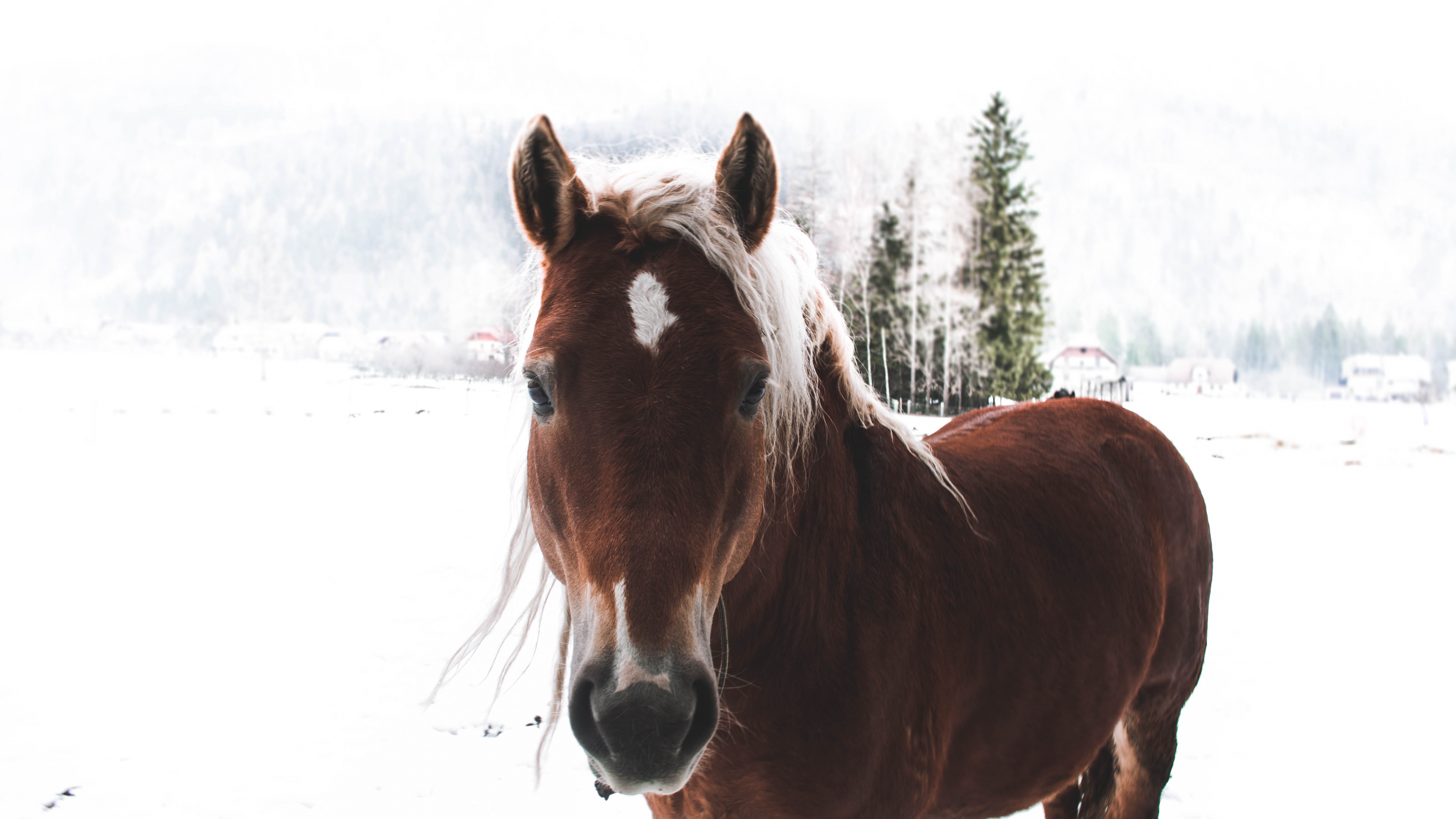 Horse snow muzzle 4k wallpaper