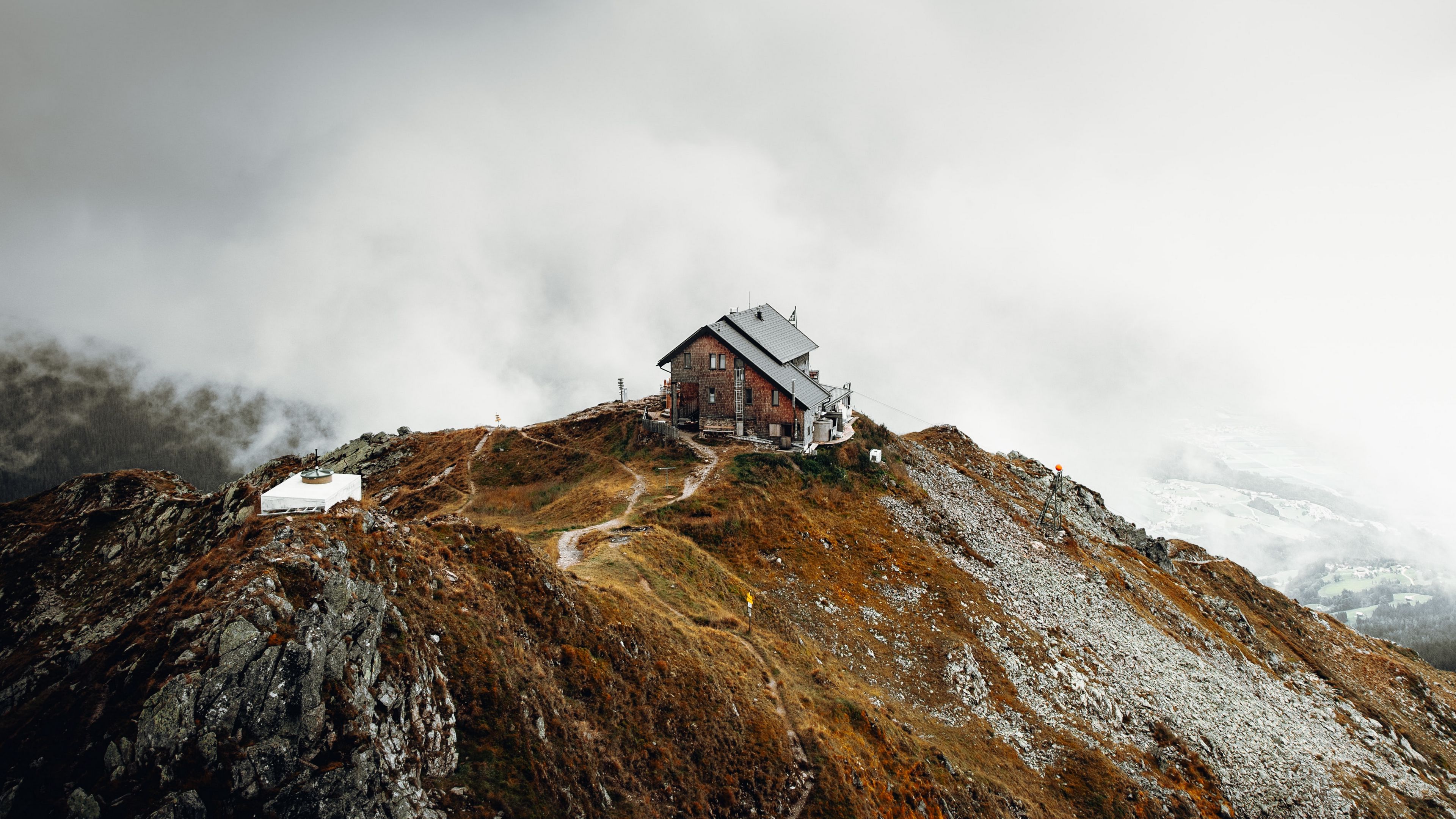 House rocks cliff 4k wallpaper