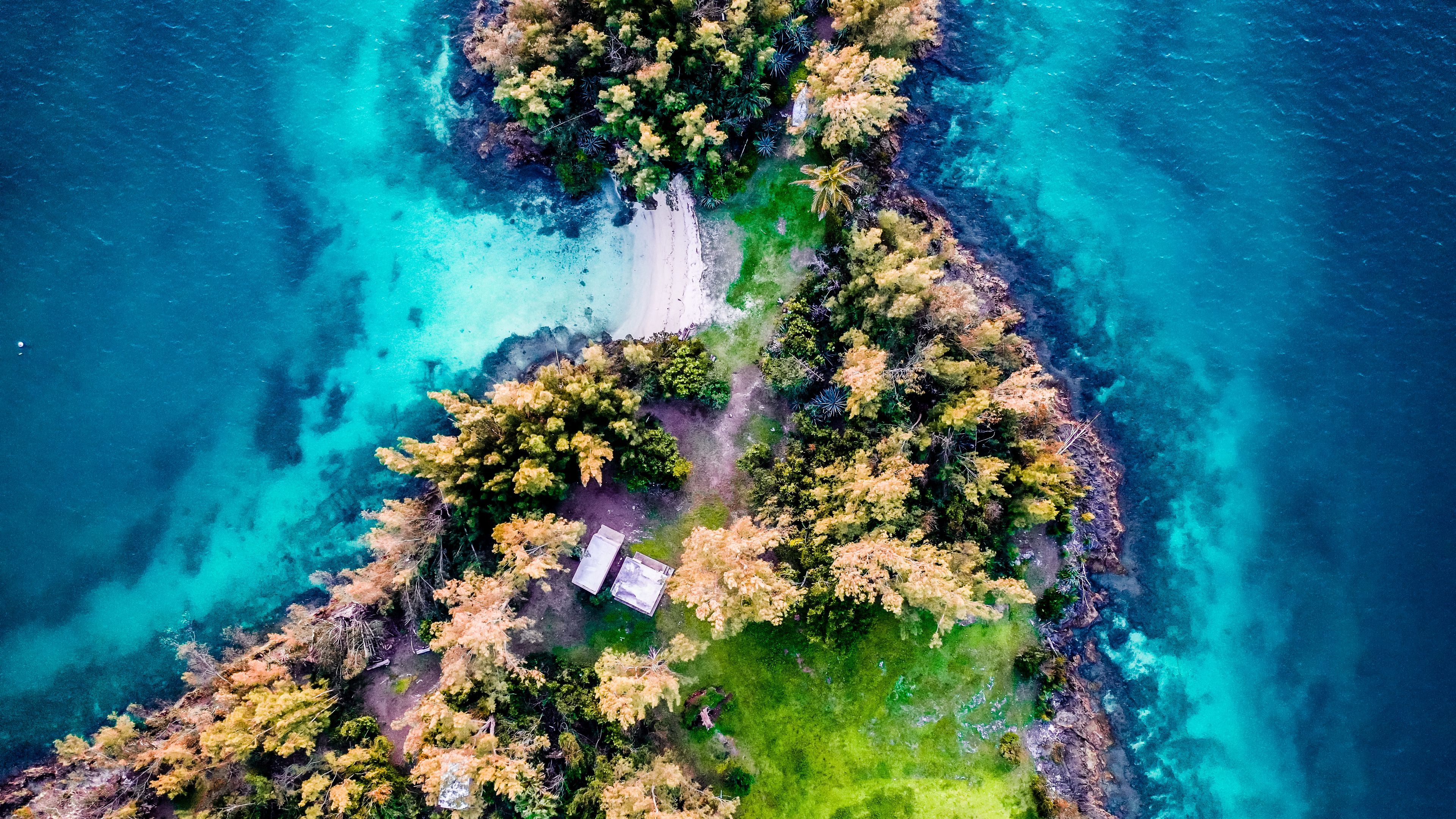 Island aerial view trees 4k wallpaper