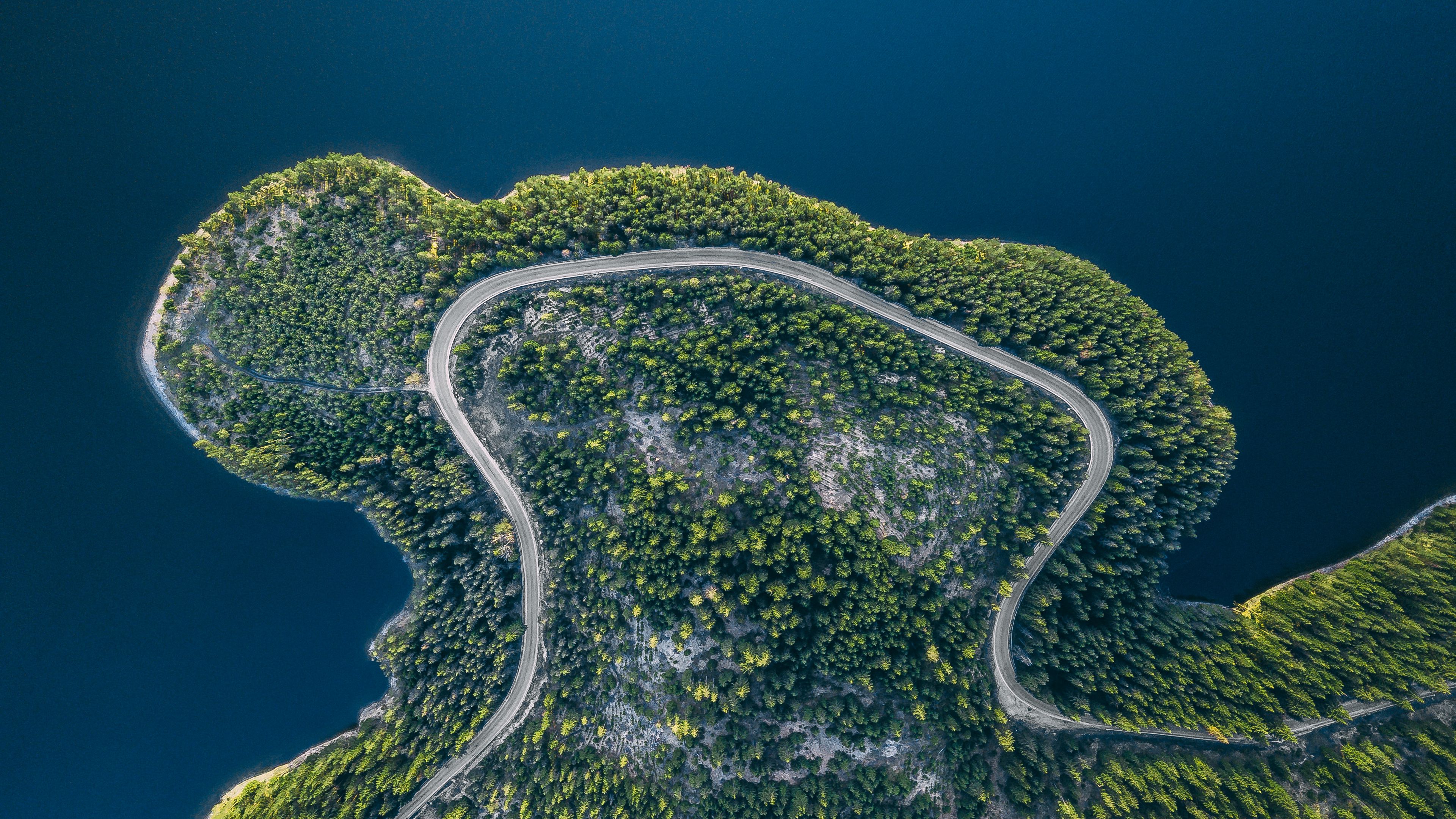 Island road aerial view 4k wallpaper Description :