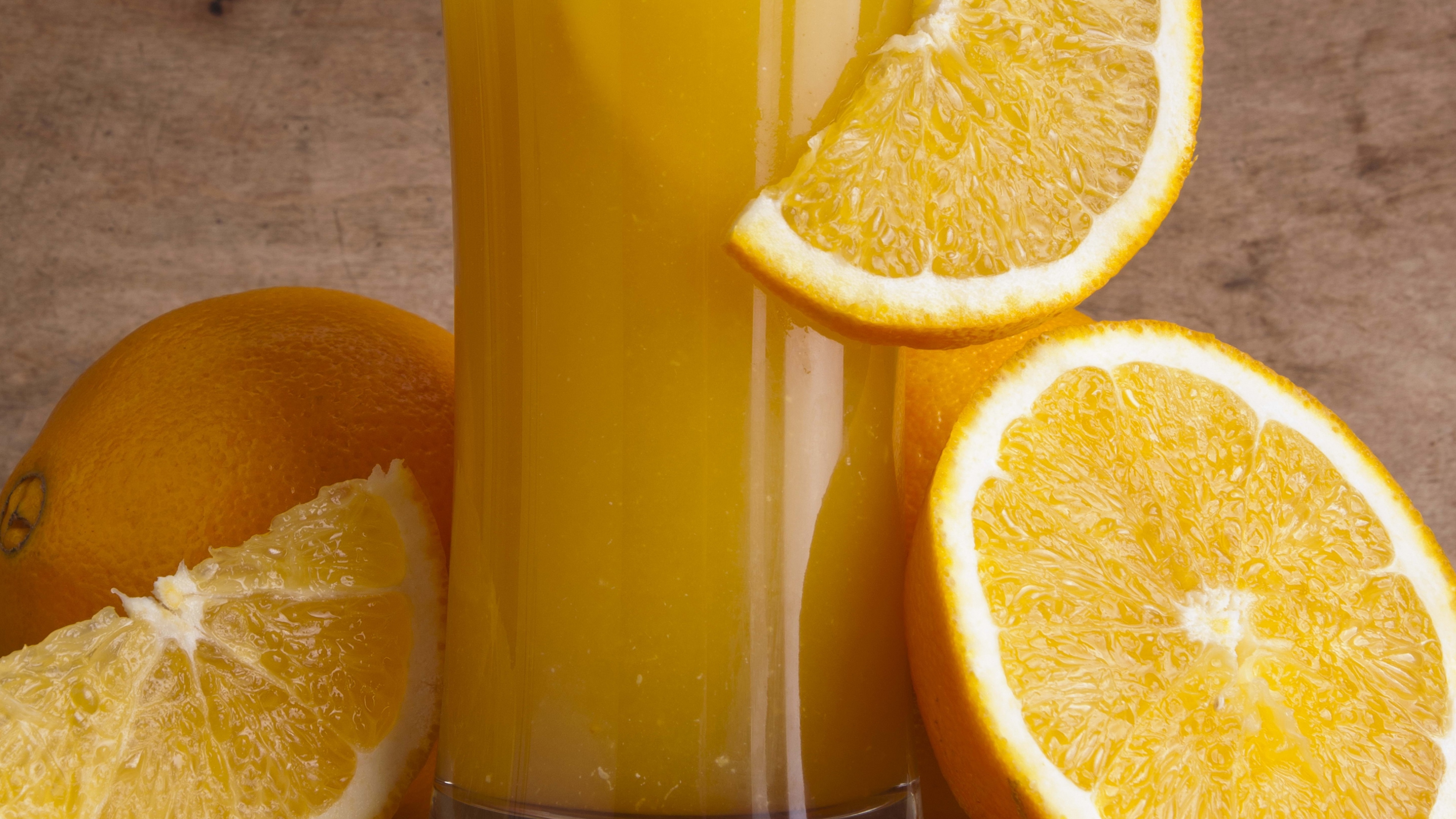 Juice orange glass cut slice 4k wallpaper